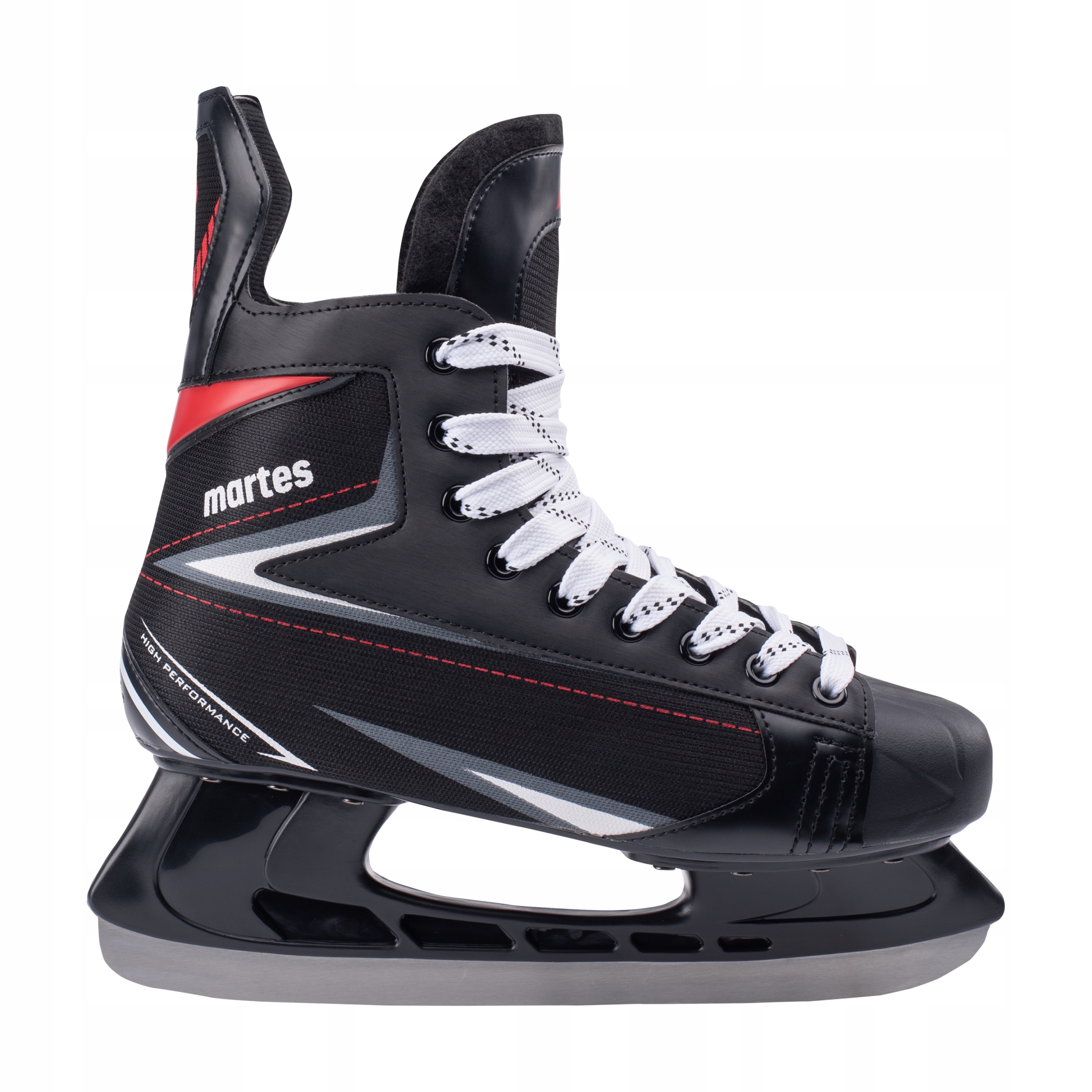 Хоккейные коньки RANF от Martes предназначены для любительского катания. Высокий, жесткий верх обеспечивает адекватную поддержку лодыжки, защищая от травм и повышая уверенность при резких маневрах. Внутренняя часть обуви покрыта мягкой подкладкой, которая не только защищает от холода, но и эффективно отводит влагу, сохраняя ногу в оптимальных условиях. Система шнуровки позволяет обуви хорошо прилегать к ноге. Усиленный носок защищает пальцы, например. против удара шайбы. Салазки изготовлены из нержавеющей стали, что продлевает срок их службы.