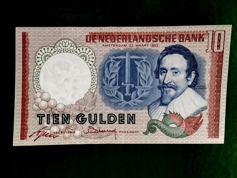 HOLANDIA - 10 guldenów 1953, P-85, st. +2/2, bardzo ładny banknot !!!