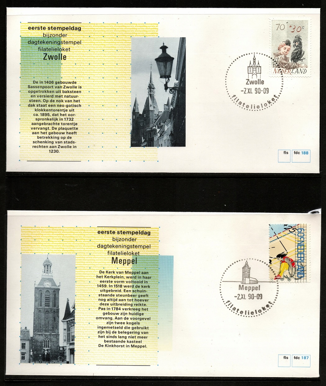 Holandia , 4 koperty / 1990 r. ( FDC 185 ,186 , 187 , 188 )