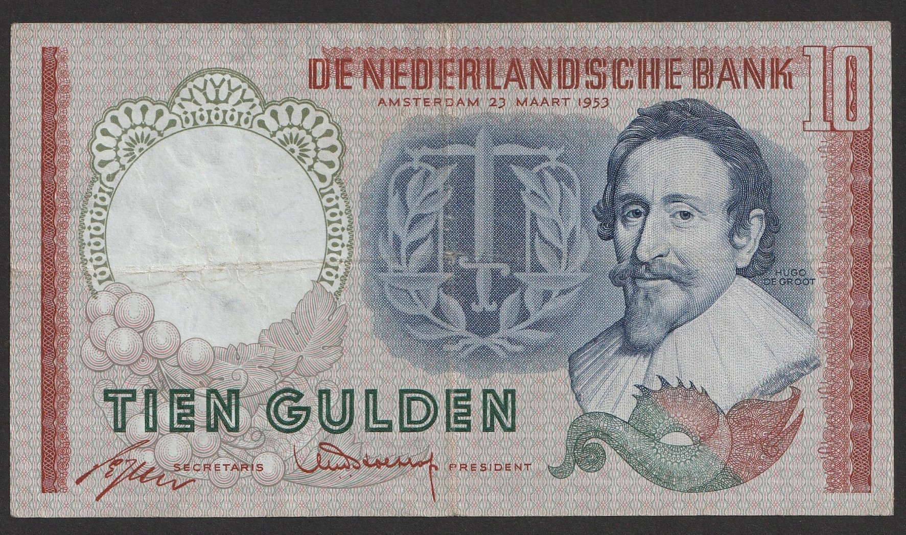 Holandia 10 guldenów 1953 - Hugo de Groot - CSV