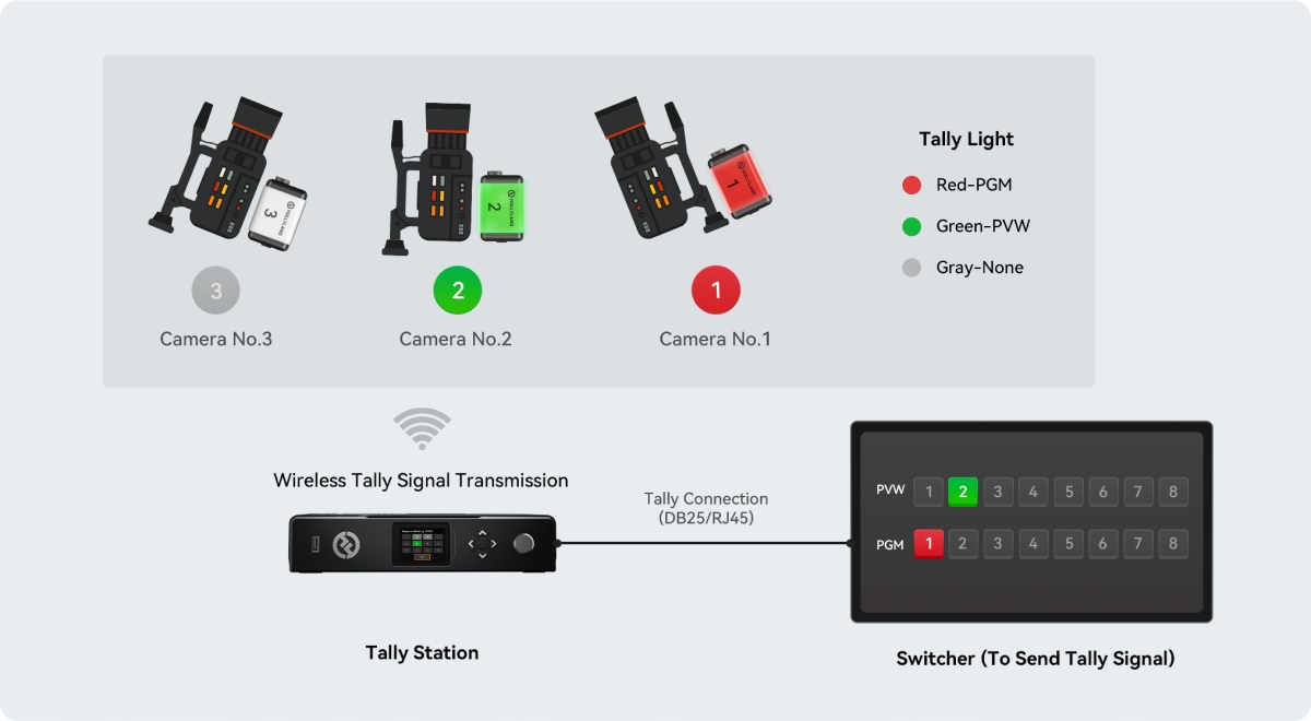 Hollyland Wireless Tally System — это высокосовместимое многопортовое устройство Tally с мощными возможностями обучения последовательностям.