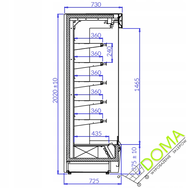 дополнительная подсветка полки – светодиодная люминесцентная лампа (цвет на выбор – белый, кондитерский или мясной)