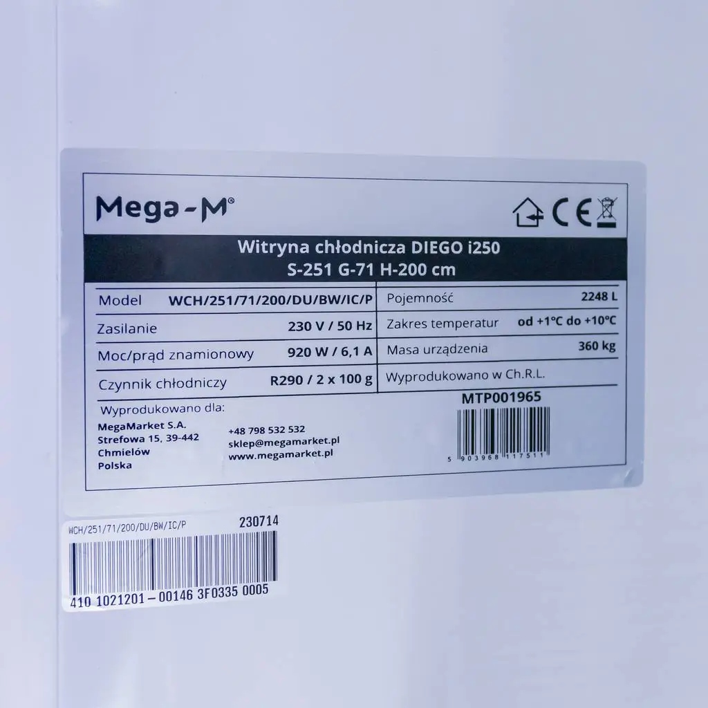 Холодильная витрина Mega-M емкостью 2248 литров — современная холодильная витрина, предназначенная для магазинов, кафе, кондитерских и ресторанов. Он сочетает в себе эстетичный внешний вид, эффективное охлаждение и практичные решения для демонстрации, повышающие привлекательность представленной продукции.