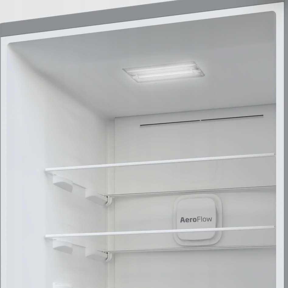 Отдельностоящий холодильник с морозильной камерой общим объемом 301л оснащен системой охлаждения NoFrost.