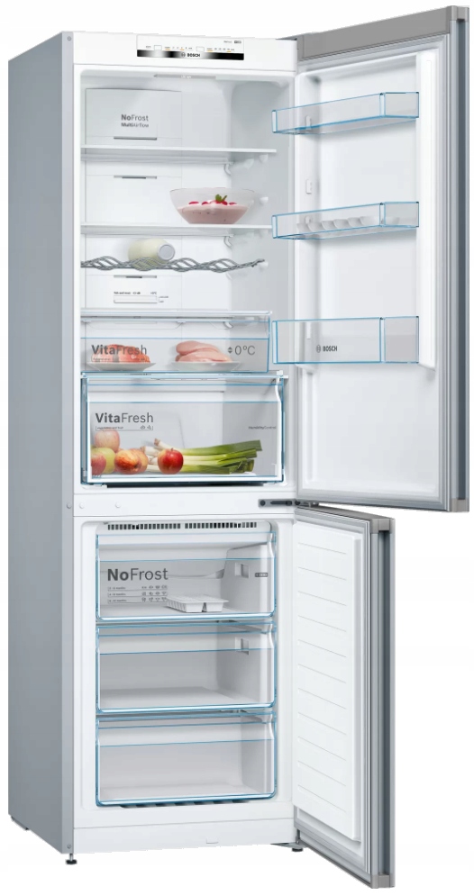 Отдельно стоящий холодильник общей емкостью 326л. No Frost: вам больше никогда не придется размораживать холодильник с морозильной камерой. Идеально подходит: сэкономьте место, разместив холодильник в углу или внутри здания. VitaFresh: сохраняет продукты свежими дольше! Рыба и мясо благодаря пониженной температуре, а фрукты и овощи — благодаря регулированию влажности. Система MultiAirflow: равномерное распределение воздуха обеспечивает свежесть дольше. Светодиодное освещение: идеальное освещение означает идеальную видимость продуктов в вашем холодильнике