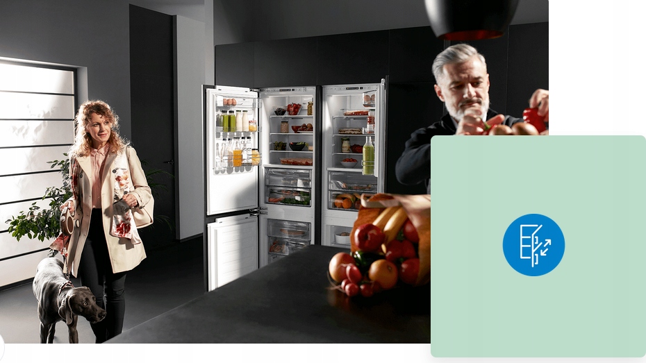 На некоторых кухнях бытовая техника размещена в необычных местах. Дверца SmoothFit™ открывается под углом 90 градусов, что означает, что холодильник можно легко разместить в углу комнаты или прямо у стены, не ставя под угрозу удобство использования. Ящики также полностью выдвигаются!