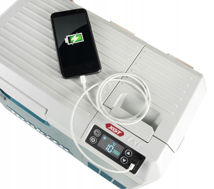 Индикатор заряда аккумулятора и светодиодный дисплей позволяют легко считывать температуру внутри устройства. Значки на светодиодном дисплее информируют о режиме работы устройства (охлаждение / нагрев). Холодильник и обогреватель имеют удобные ручки для транспортировки и USB-порт для зарядки мобильных устройств, расположенный внутри аккумуляторного контейнера.