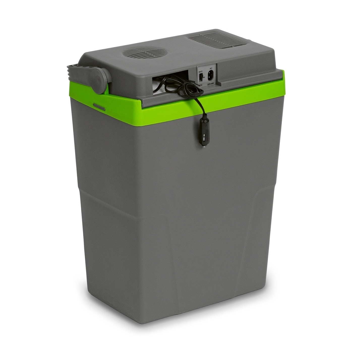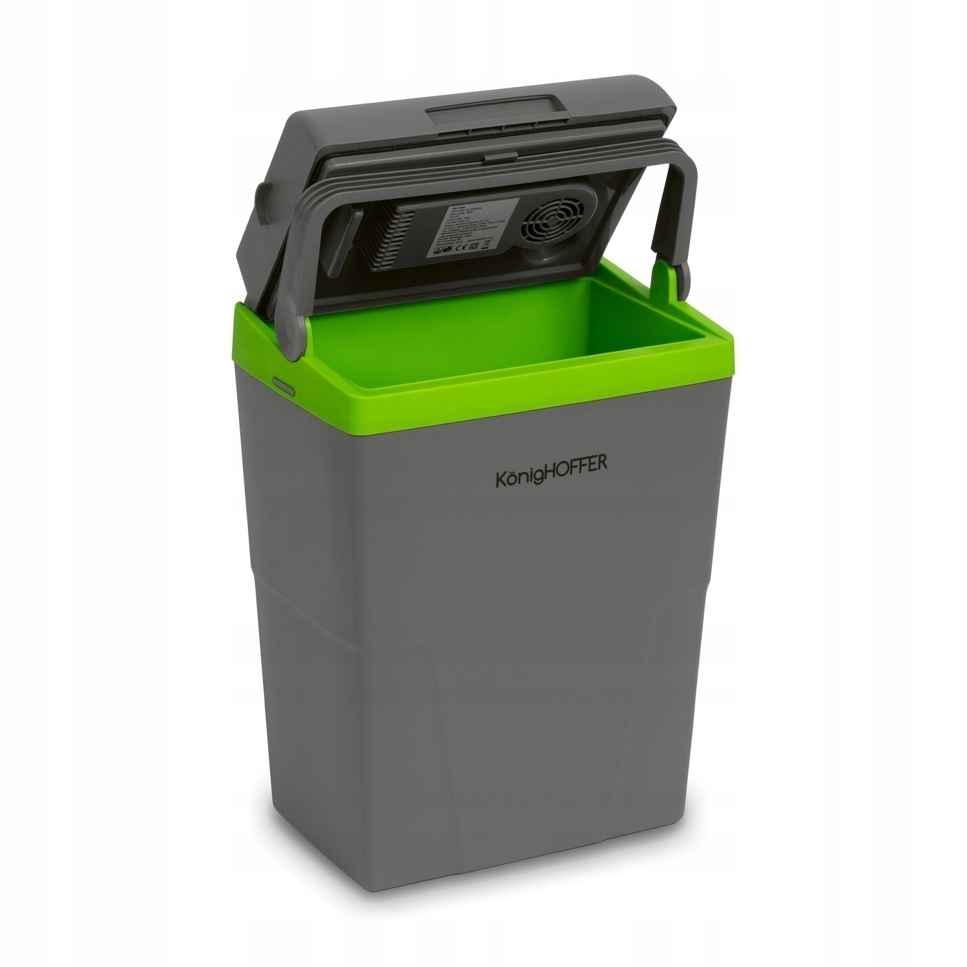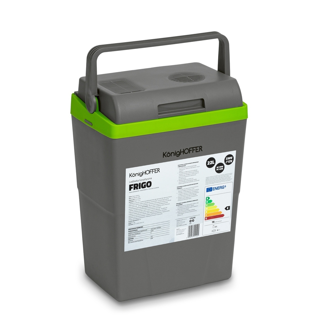 Электрический туристический холодильник Konighoffer Frigo имеет емкость 22 литра. Он теплоизолирован пенополиуретаном, а корпус изготовлен из прочного пластика. С его помощью вы сохраните продукты свежими на протяжении многих часов во время путешествия. Аналогичным образом можно позаботиться и о напитках, которые вы берете с собой. Более того, вы получите дорожный холодильник, который очень хорошо охлаждает содержимое. Просто используйте понятную панель управления на задней панели продукта. Там же вы найдете розетку для кабеля, входящего в комплект, встроенный кабель на 12 В и при необходимости сможете установить режим работы ЭКО. Вы также получите удобство переноски модели в путешествии и устойчивое ее размещение. Большая эргономичная ручка выполняет еще одну функцию. Правильно расположив его, вы защитите холодильник 12 В 230 В от открытия крышки во время транспортировки или ее закрытия. Вы также можете подключить питание кулера к электрической розетке или прикуривателю автомобиля. Уровень шума при работе портативного холодильника Frigo не превышает 26 дБ.