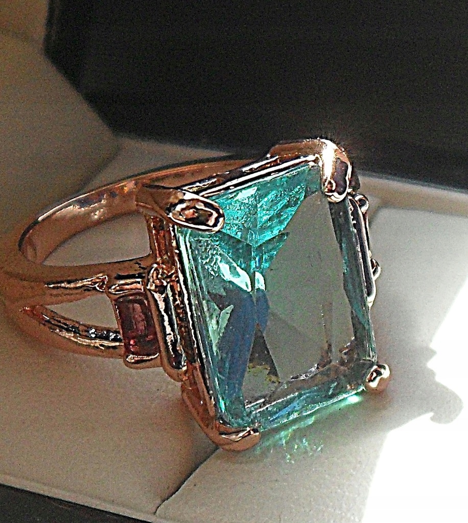 УКРАШЕН БОЛЬШИМ ПРОЗРАЧНЫМ ТОПАЗОМ, Имитирующим НАТУРАЛЬНЫЙ ТОПАЗ СВЕТЛО-ГОЛУБОГО ЦВЕТА