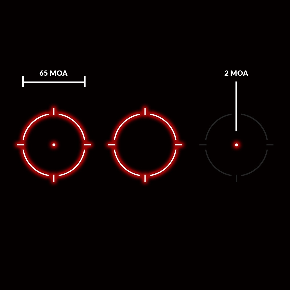 Пользователь может выбрать в коллиматоре одну из трёх точек прицеливания — точку 2 МОА, круг 65 МОА и их комбинацию. В коллиматоре установлена солнечная панель, снижающая расход заряда батареи. Дополнительно солнечная панель имеет автоматическую регулировку яркости точки прицеливания.