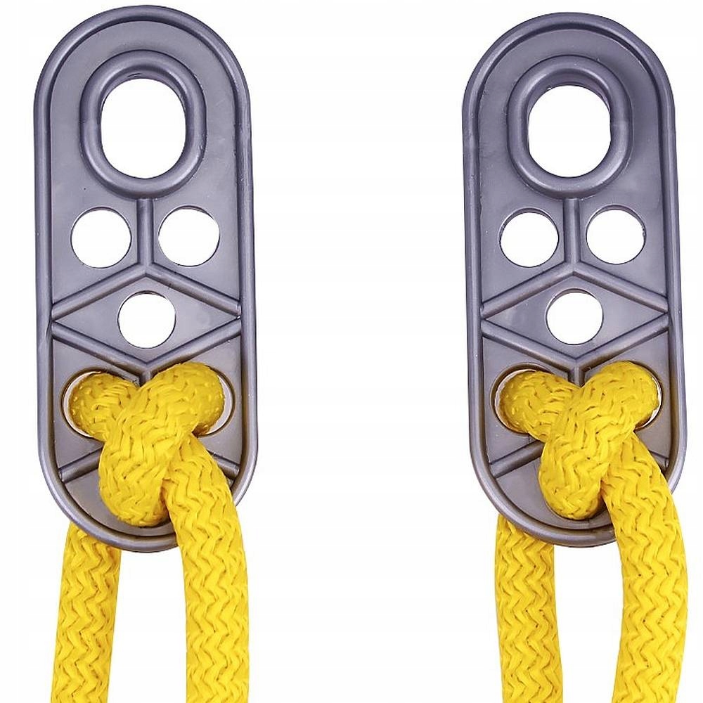 Качели имеют съемную Т-образную перекладину, защелки. Перекладины расположены под качелями, поэтому нет необходимости риск случайного отсоединения ребенком. Качели оснащены ремнем с защелкой, который фиксирует ребенка во время игры.