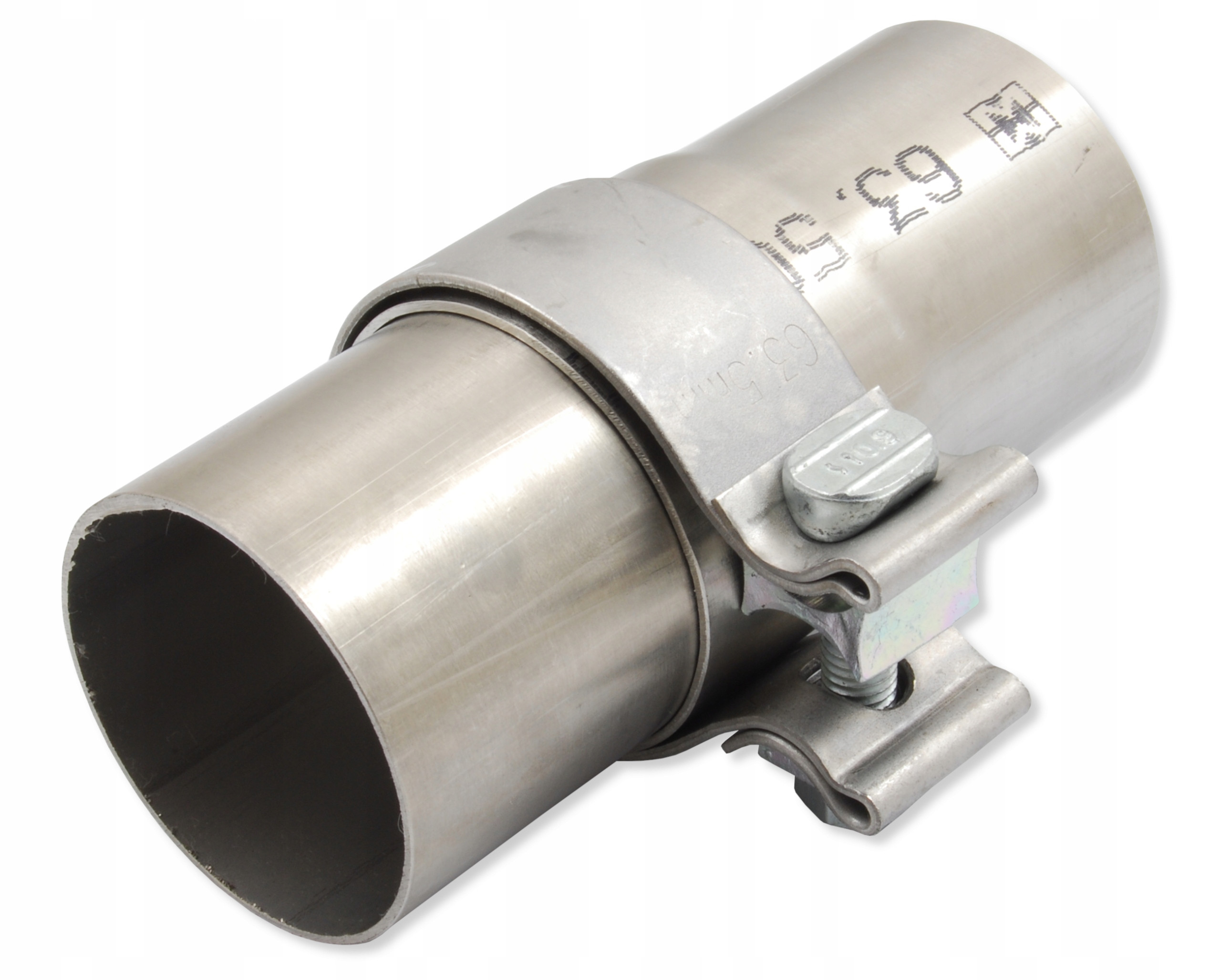 Хомутик предназначен для расширения, выполненного на конце трубы внешним диаметром 63,5 мм (2,5 дюйма). Такое расширение снаружи составляет примерно 68-69 мм и это внутренний диаметр хомута.