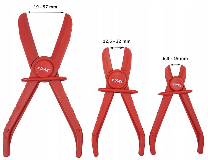 Набор плоскогубцев для жидкостных труб. В комплект входят хомуты для тормозных и топливных магистралей, шлангов и магистралей радиатора.