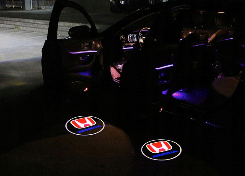 Светодиодные лампы с логотипом HONDA выводятся для освещения пространства под дверями автомобиля.