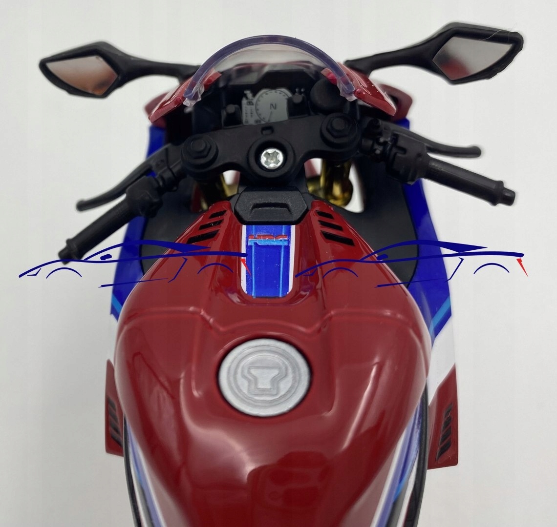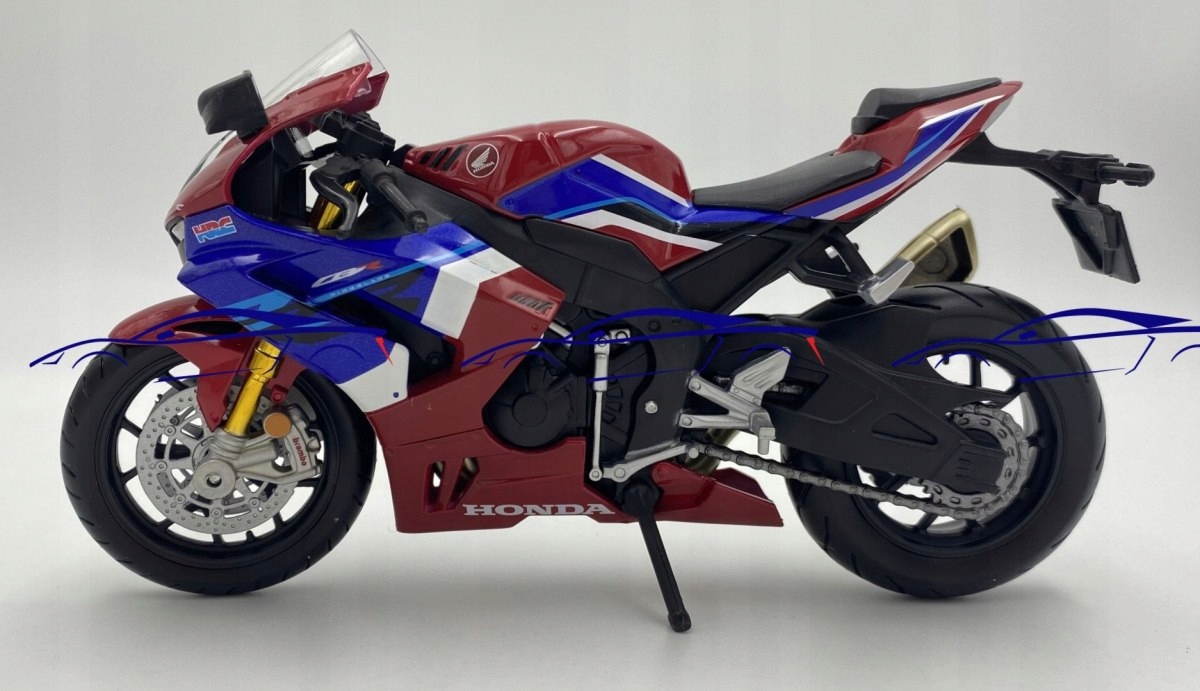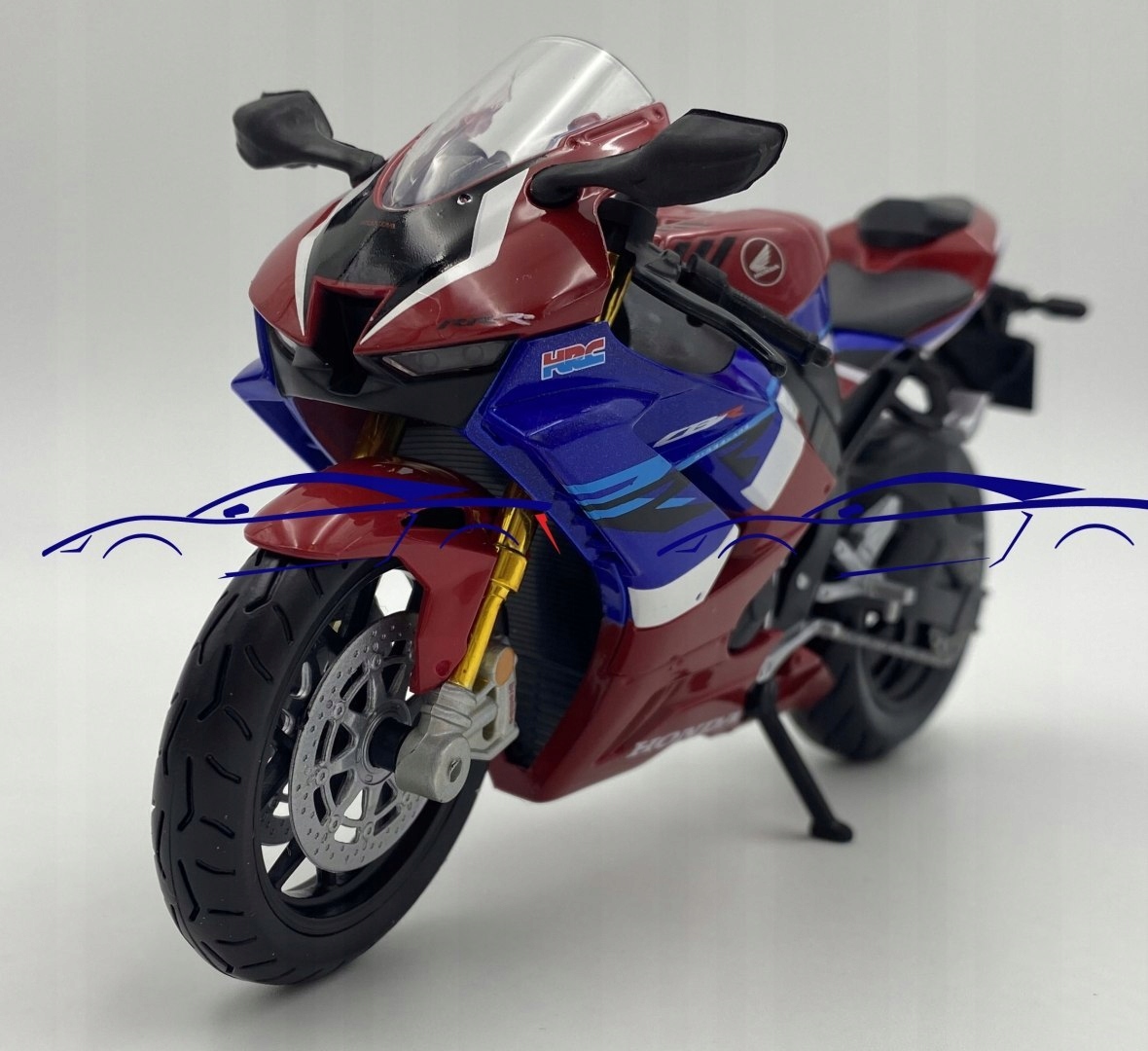Модель мотоцикла Honda характеризуется вниманием к деталям. Имеет движущиеся элементы; Боковая нога, колеса, рулевое колесо, задний маятник.