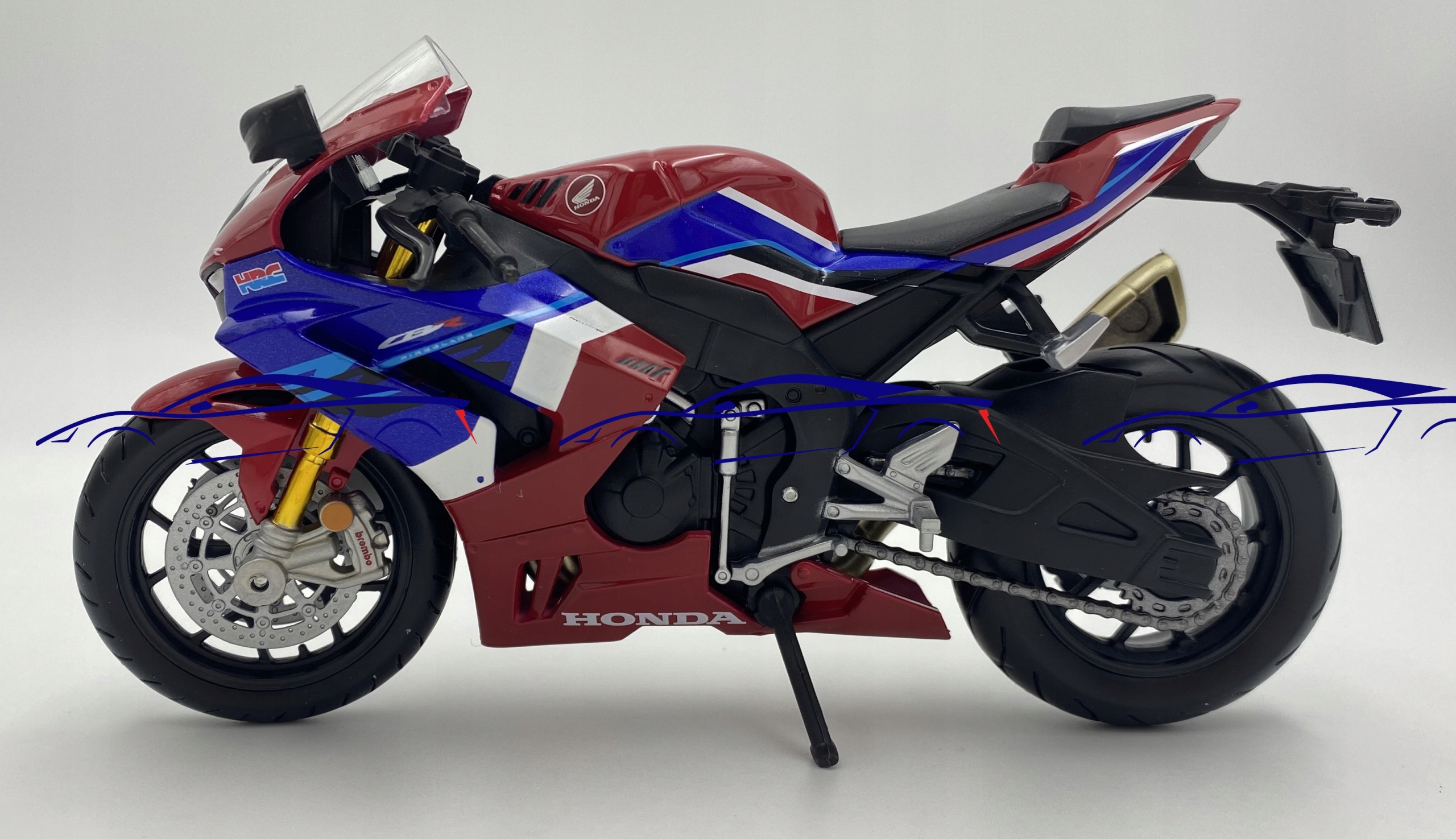 Модель мотоцикла HONDA отличается вниманием к деталям. Имеет подвижные элементы; боковая подножка, колеса, руль, задний поворотный рычаг.