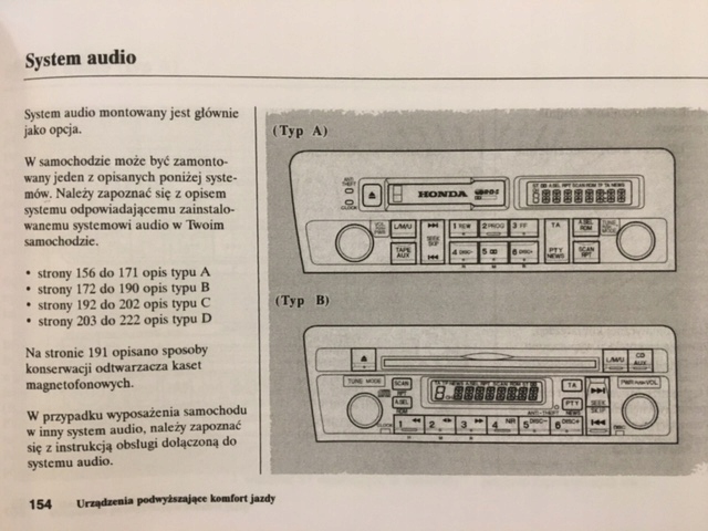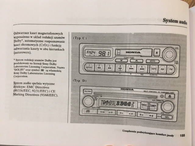 Honda Civic 2001-2005 руководство пользователя на польском языке + радио