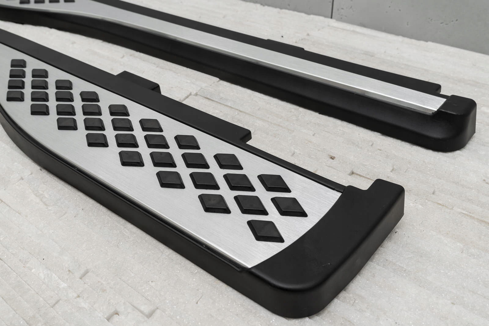 Продукт, изготовленный из высококачественного алюминия и ABS автомобильного материала. Декоративные элементы на пороговой поверхности изготовлены из высококачественной нержавеющей стали