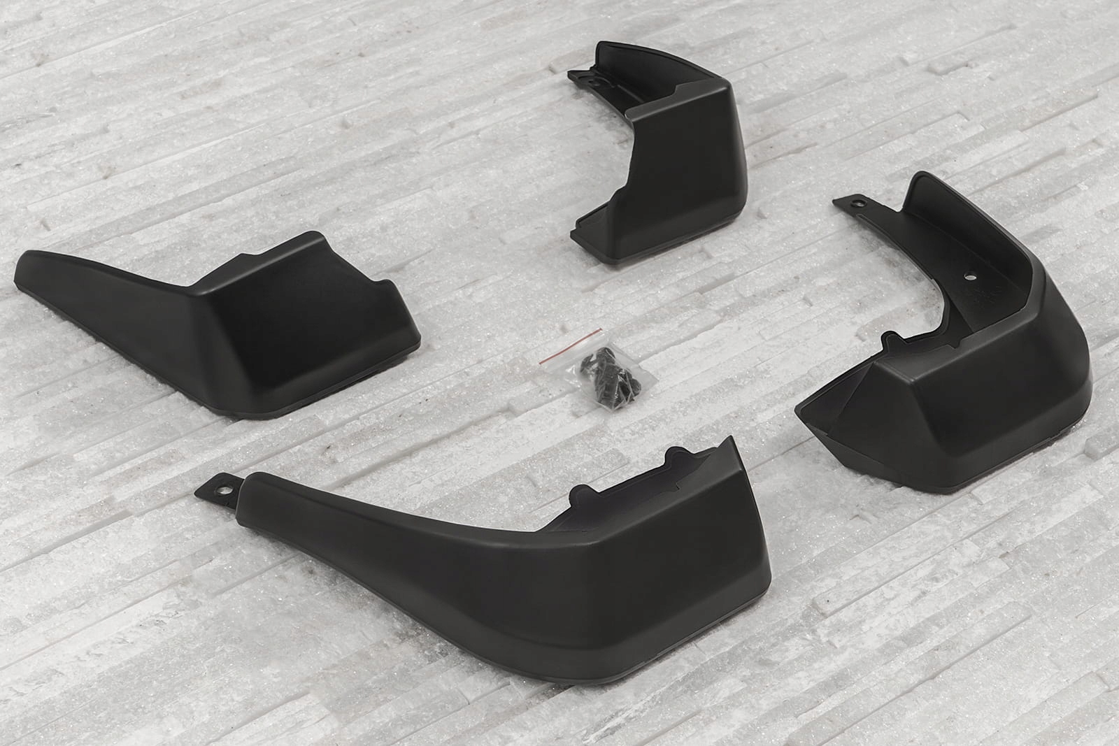 В комплект входит комплект из четырех брызговиков и элементов крепления. Изделие устанавливается на заводские места, без дополнительных доработок. Мы рекомендуем установку в профессиональной мастерской.