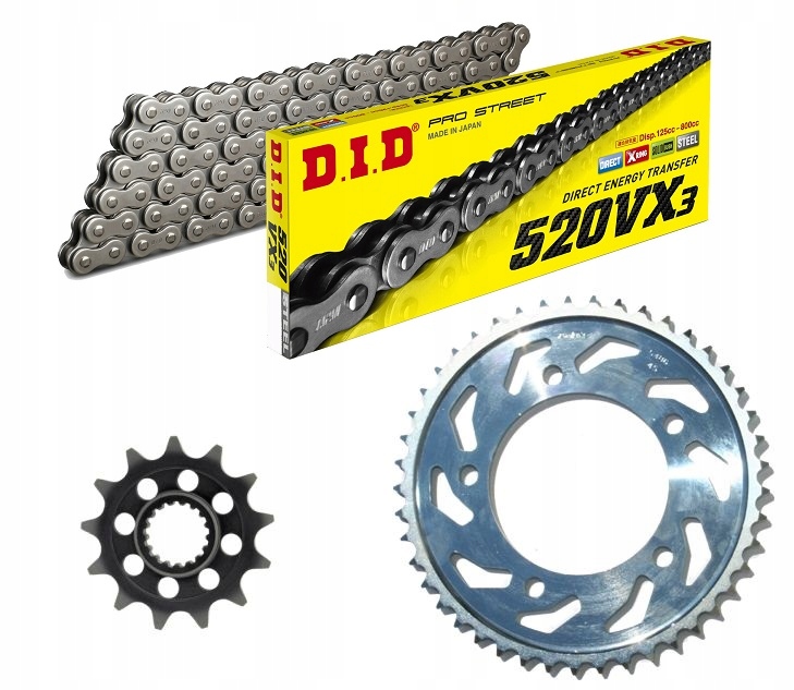 D.I.D Цепочки являются продуктом высочайшего качества. Производитель - японская компания "Daido Kostoo", которая работает на рынке более 70 лет, специализируясь на производстве цепочек и сроков. Пользователи двух швейцарских веществ по всему миру давно убеждены в своих неоспоримых качествах и успешно используют их в самых тяжелых дорожных мотоциклах, так и в конкурентных видах спорта, спортивных транспортных средствах ATV. Широкий диапазон варьируется с точки зрения силы, применения и цены.