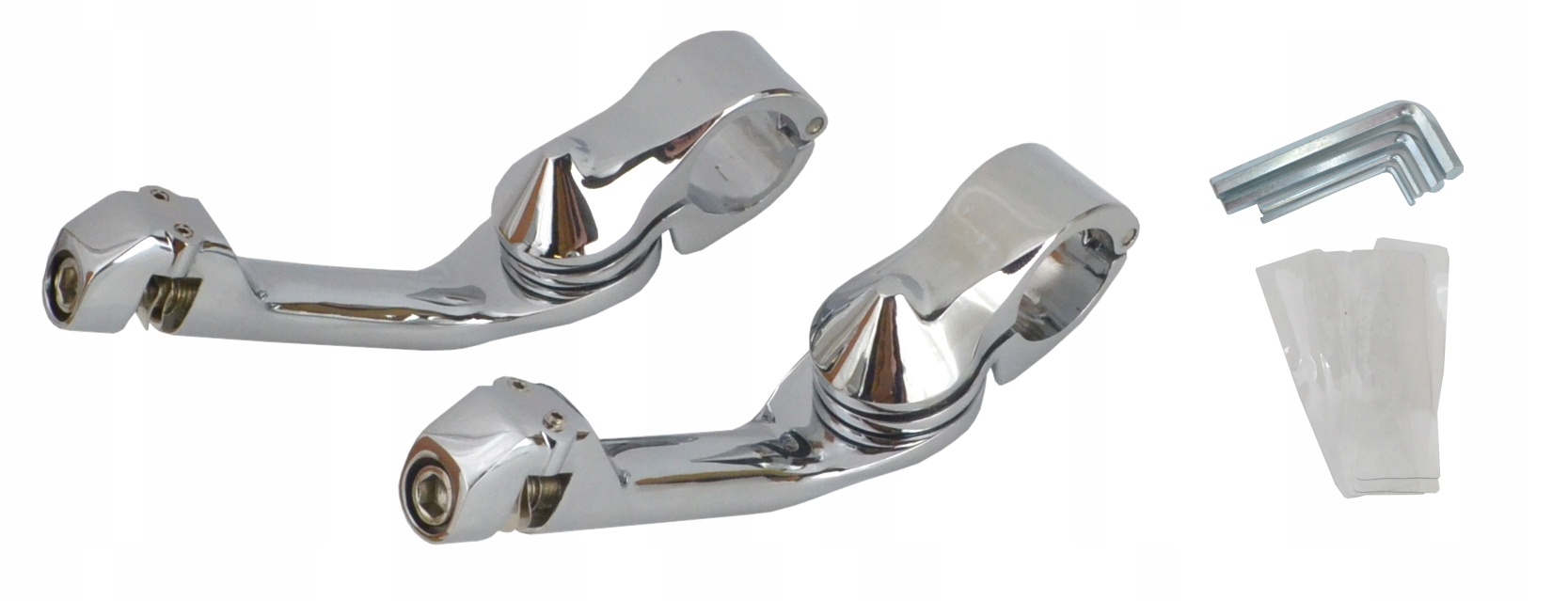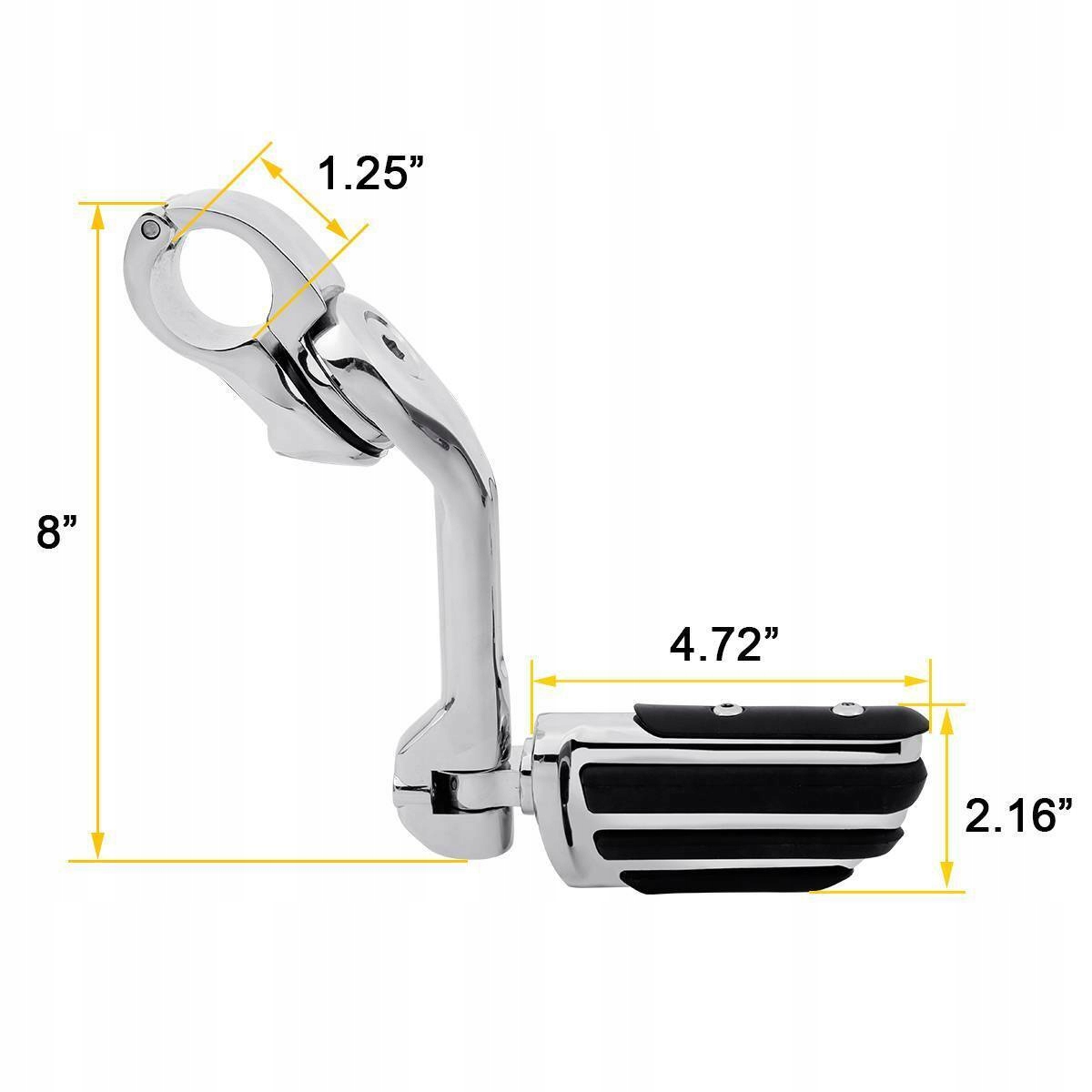 Эти ручки позволяют водителю иметь широкий диапазон регулировок, который невозможен при использовании других рукояток зажимного типа. Диапазон регулировки позволяет регулировать положение подножек для водителей высокого, низкого или среднего роста. Может быть установлен на любую круглую раму или крышку двигателя.