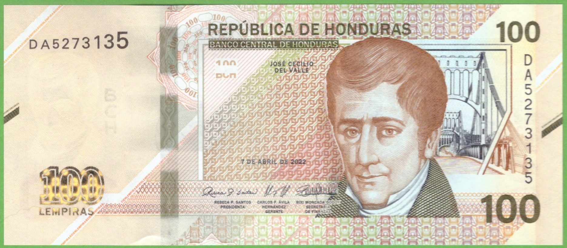 Honduras 100 Lempias 2022 P-W112 UNC Новая дата и подписи