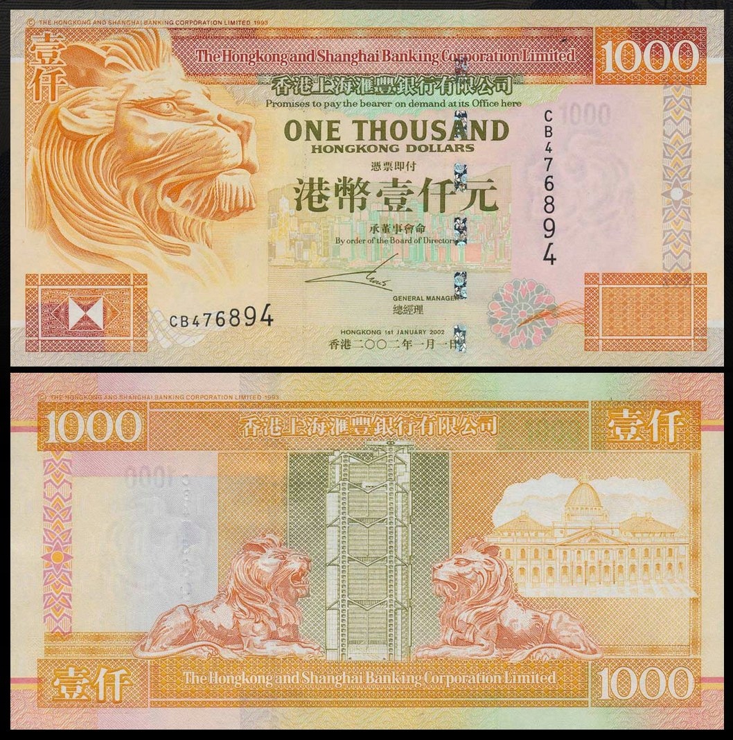 HONG KONG 1000 Dollars 2002 P-206b Hong Kong & Shanghai Banking Corp. UNC