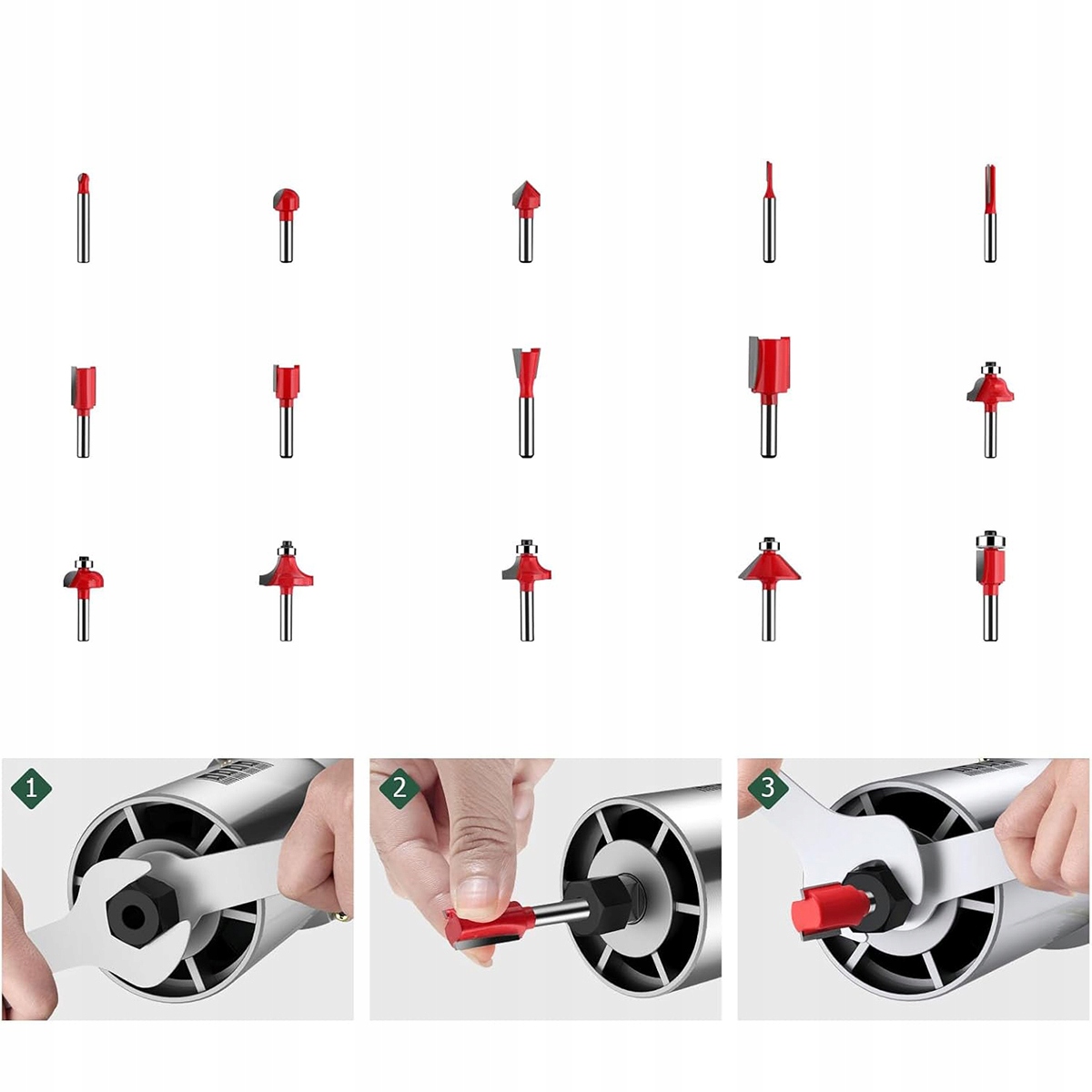 ⚙️Электрический фрезер 800 Вт, диаметр 6,35 мм, 30 000 об/мин. Фрезер для одной руки. Фрезер для кромок. Переменная скорость, в комплект входят: Набор из 15 фрез 1/4 дюйма, идеально подходящих для работы по дереву🔩
