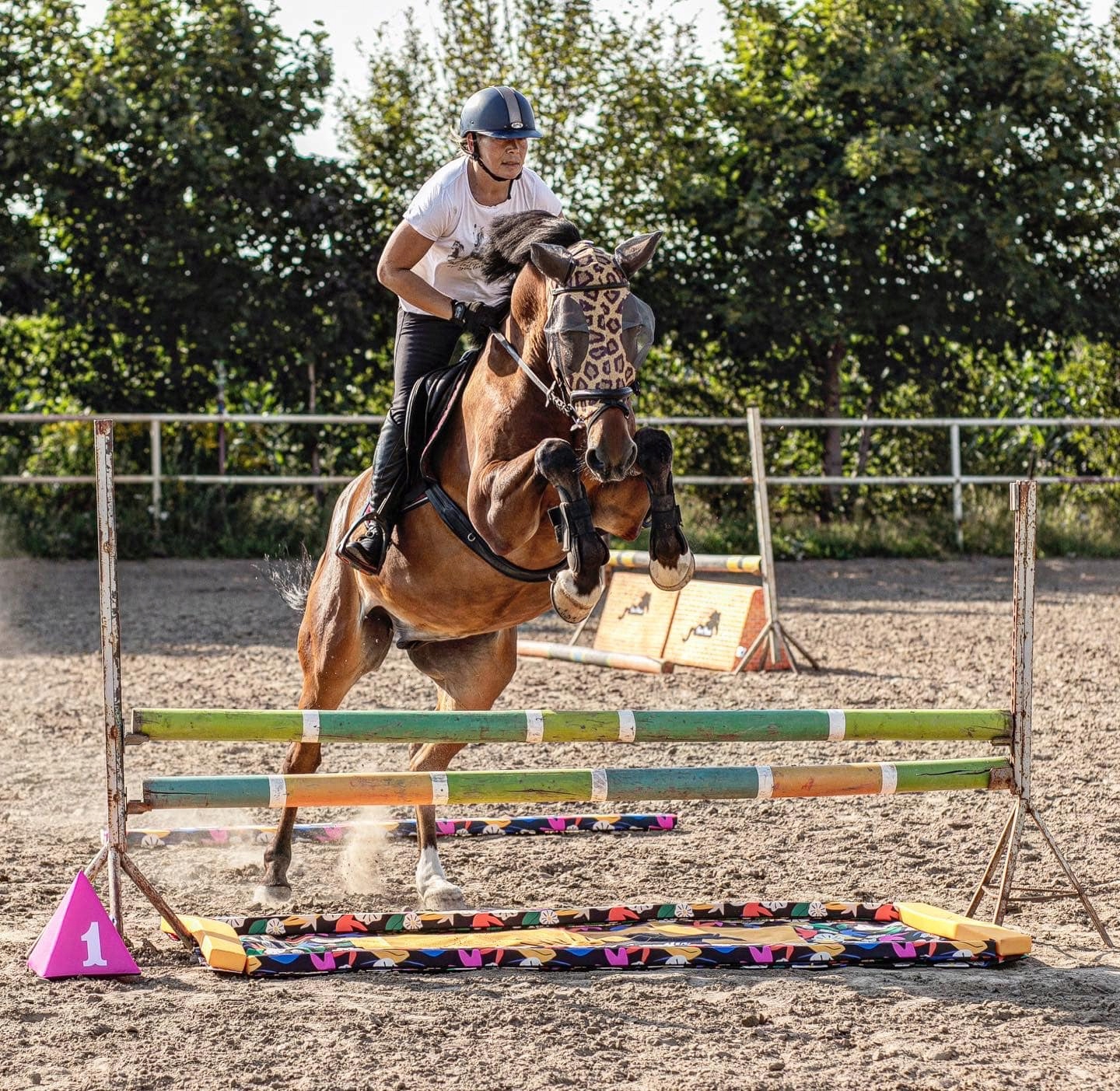 Яркие цвета и узоры (которые мы печатаем сами) ) прекрасно задействуют для работы оба полушария мозга лошади, необходимые для выработки правильных движений.