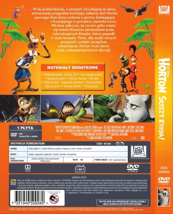 Просматривая «HORTON SłYSZY KTOSIA (DVD)», вы можете быть уверены, что данный товар из каталога «[rubrica_name]» будет доставлен из Польши и проверен на целостность. В цене товара, указанной на сайте, учтена доставка из Польши. Внимание!!! Товары для Евросоюза, согласно законодательству стран Евросоюза, могут отличаться упаковкой или наполнением.