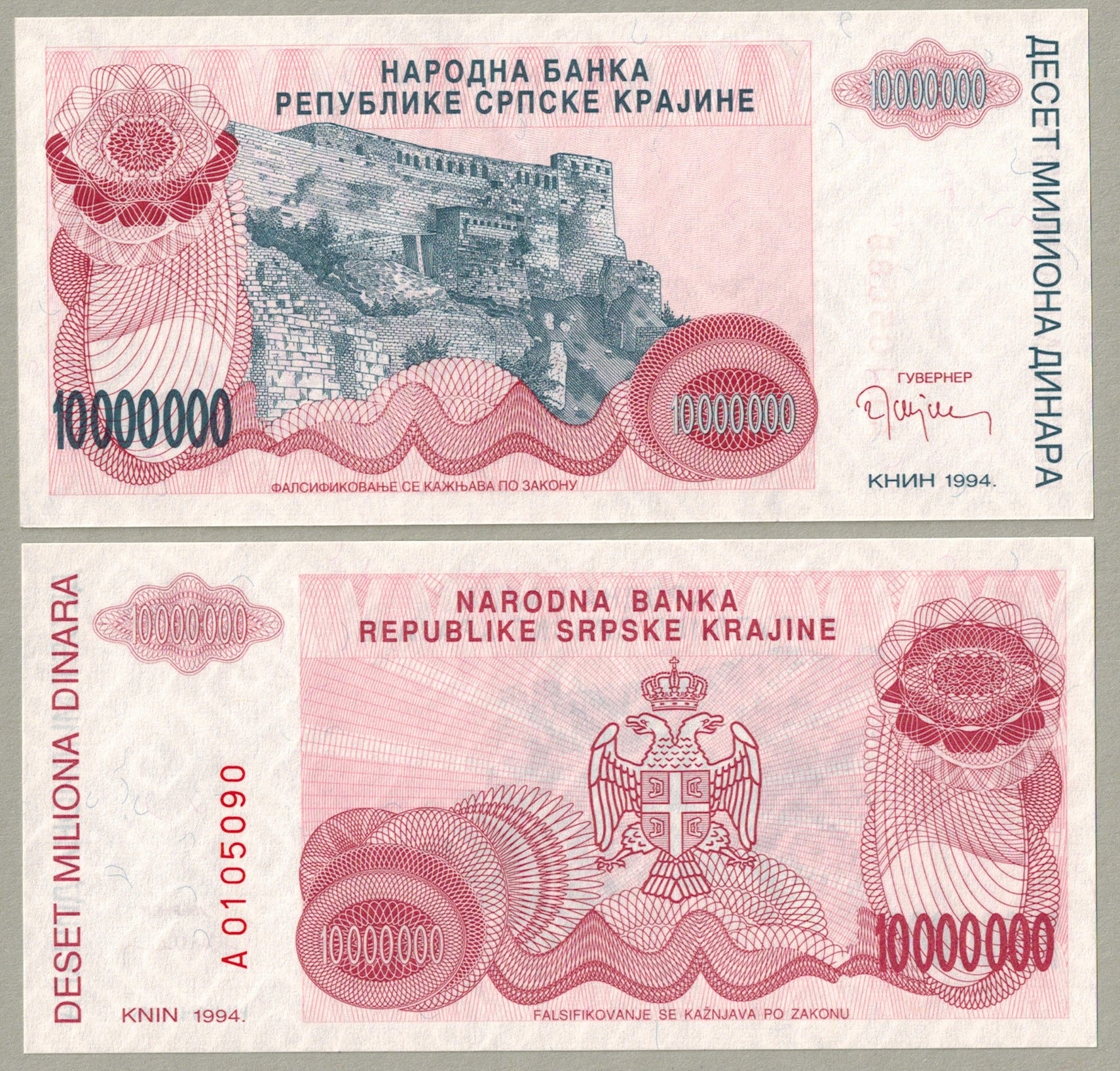 Хорватия Краина 10 000 000 динаров 1994 P-R34 UNC