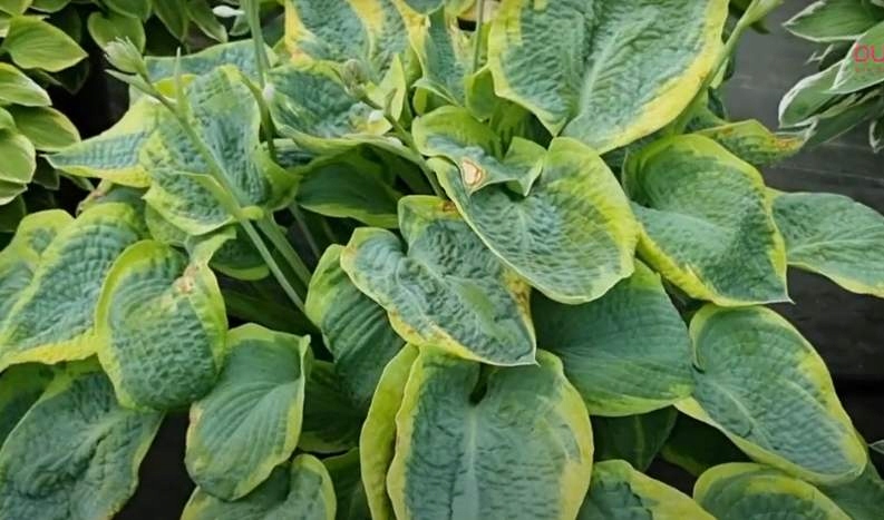 Июнь – один из самых красивых маргинальных сортов. Листья имеют сердцевидную форму. В центре от золотистого до кремового цвета, с сине-зеленым неровным краем и полосами, заходящими внутрь листа. Во второй половине лета листья могут стать более темными – желто-зелеными. Чтобы растение правильно окрасилось, его следует поместить в более солнечное место, но не на яркое солнце. Цветки светло-лавандовые (в июне), используются для составления букетов. Подходит для выращивания в контейнерах. Диаметр комка 75 см, высота 35 см.