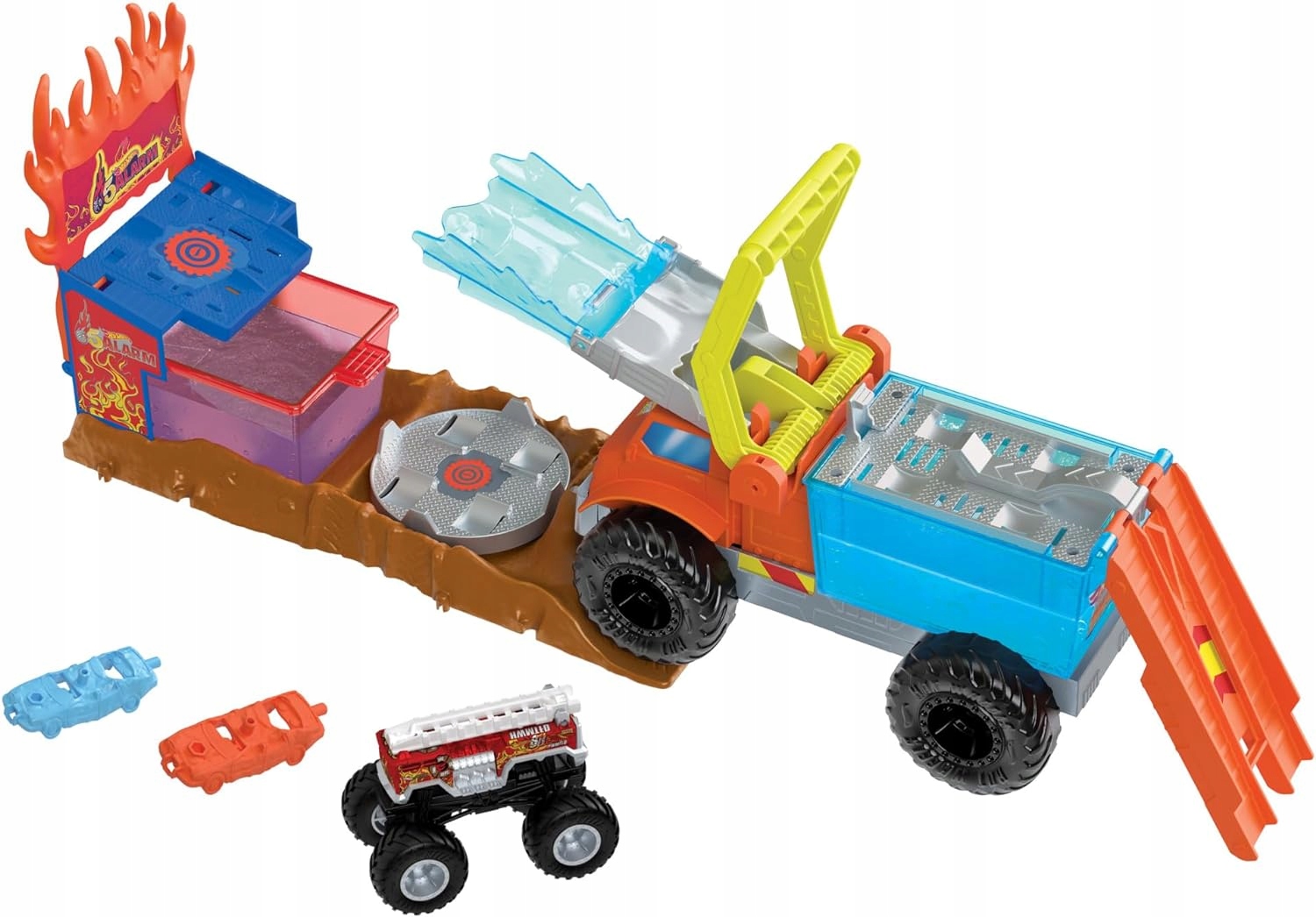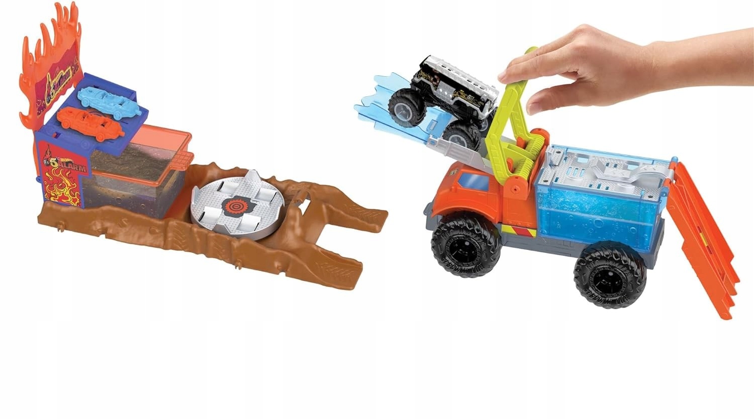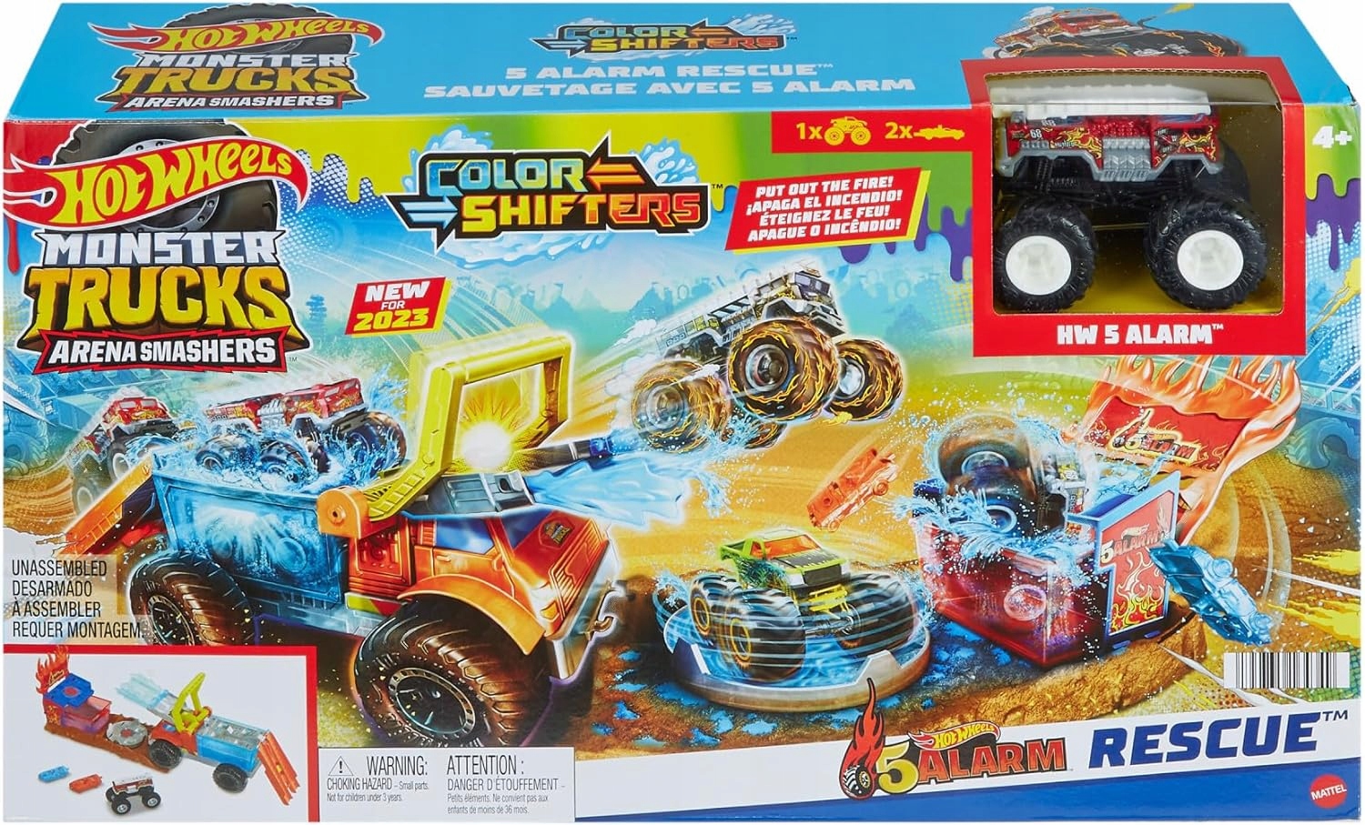 Игровой набор Hot Wheels Monster Trucks Arena Smashers Color Shifters 5 Alarm Rescue сочетает в себе веселую сенсорную игру с захватывающими функциями изменения цвета.
