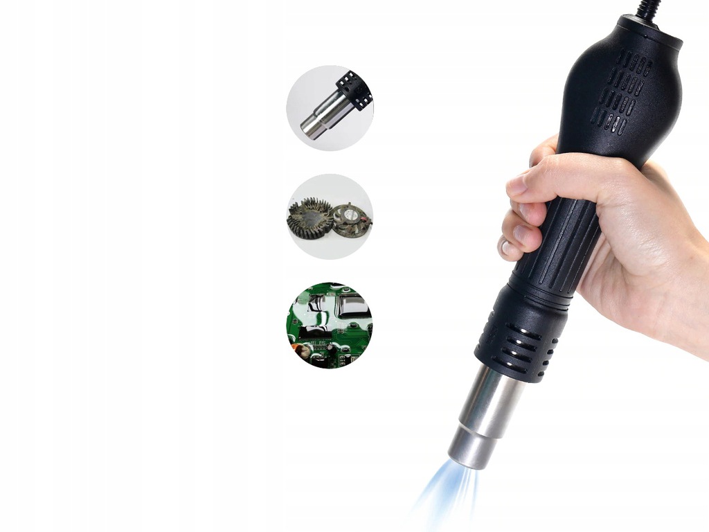Термовоздушный паяльник оснащен керамическим нагревательным элементом, который нагревается быстро и равномерно. Нагреватель изготовлен из твердых сплавов, что обеспечивает длительное время работы при высоких температурах без деформации, что существенно повышает стабильность работы и продлевает срок службы нагревателя.
