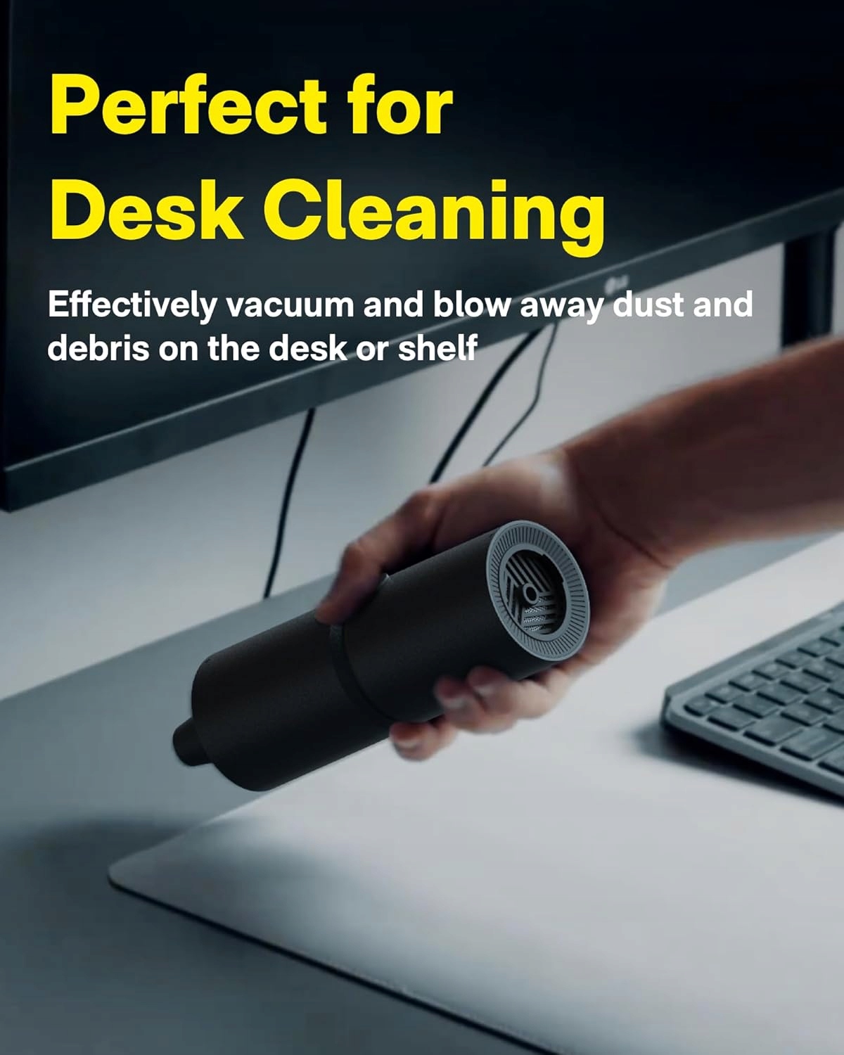 Сильный сосание 15 000 PA: HOTA Desk Desk Cleamer Cleamer, оснащенный бесщеточным двигателем, обеспечивает сильное сосание 15 000 PA, которое эффективно собирает пыль из столешницы, компьютеров и зазоров в автомобилях. Функция вакуумной сварки позволяет оптимизировать пространство для хранения и замедлить больше места для других вещей.