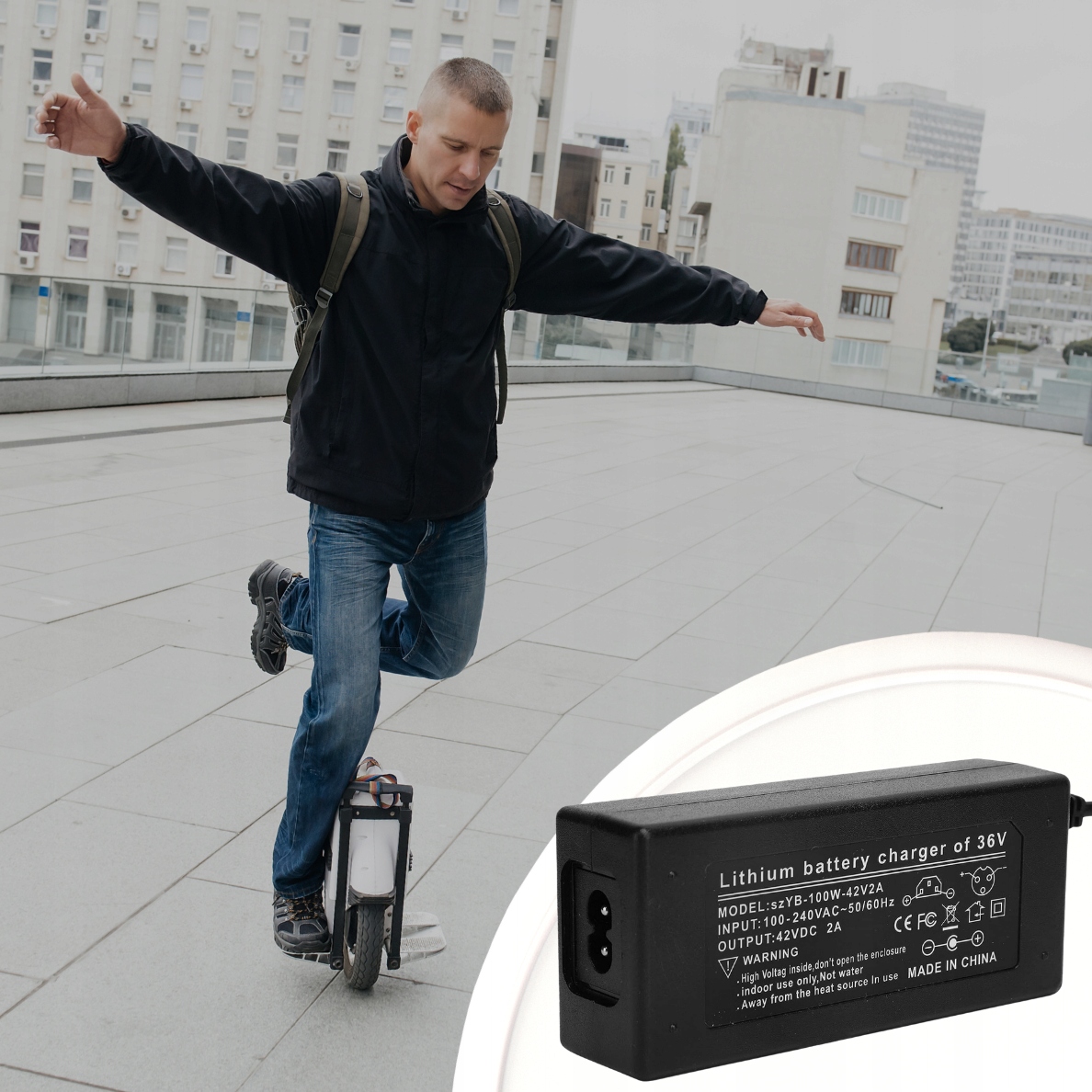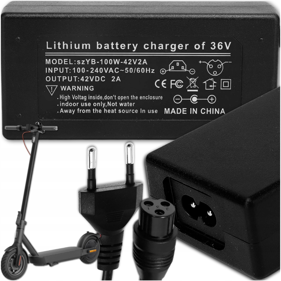 - 42V 2A сетевого зарядного устройства с 3-контактным (12 мм) плагином