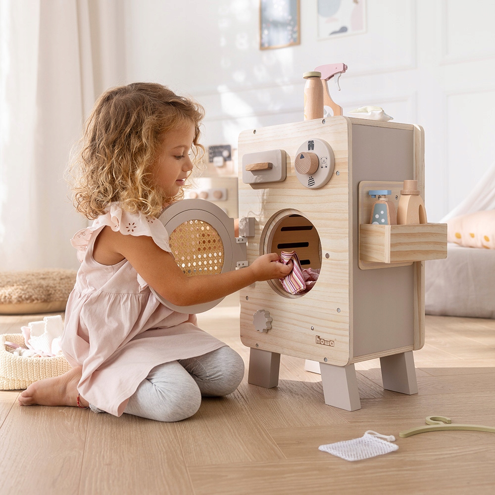 Детская стиральная машина Howa из дерева, натуральный бежевый 48261