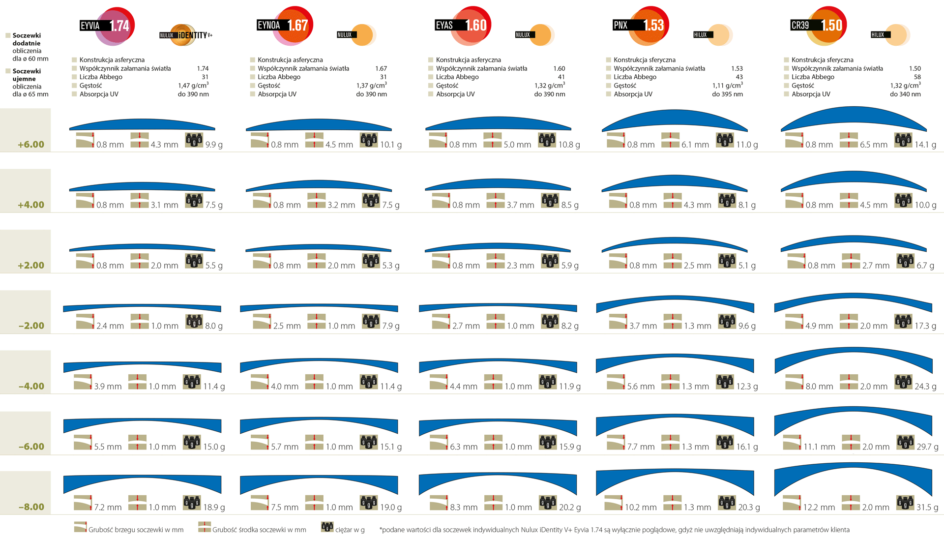 - диапазон мощности: сф. - от 8,00 до +4,00 дпт цил. +2.00 dpt - возможность изготовления линз с другой оптической силой
