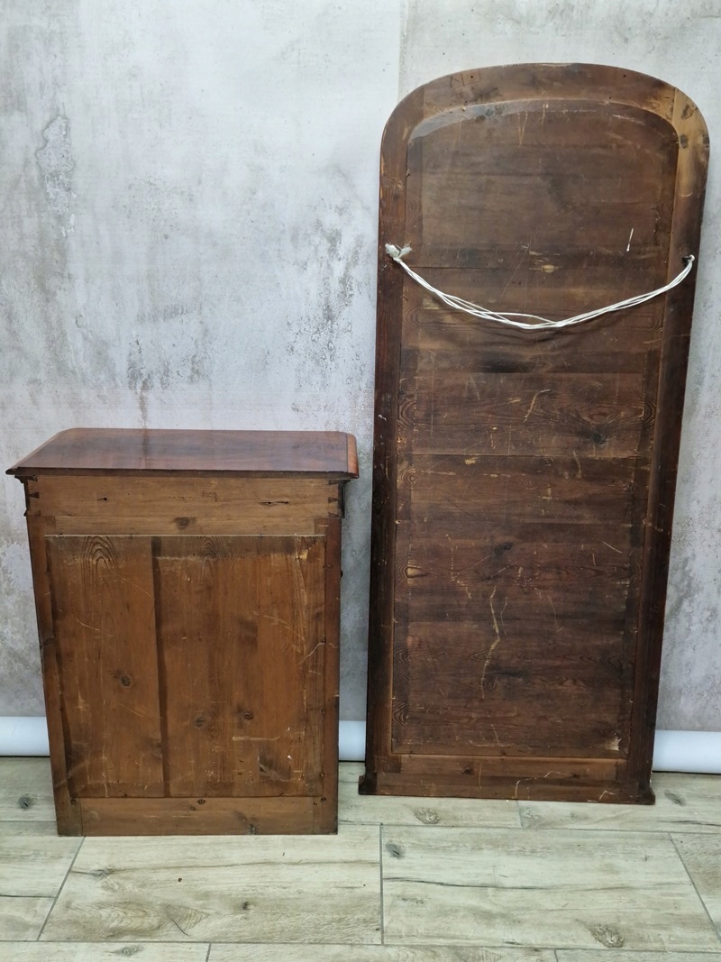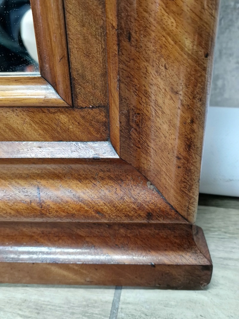 Большое зеркало, толстая рама с закругленным верхом.