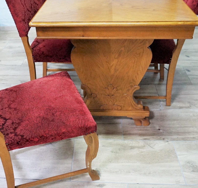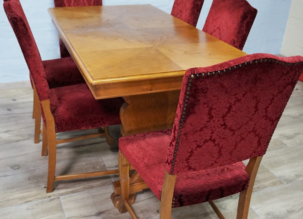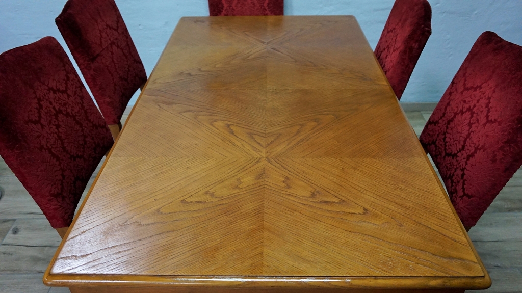 Эксклюзивный комплект из массивного стола + 6 стульев с мягкой обивкой.