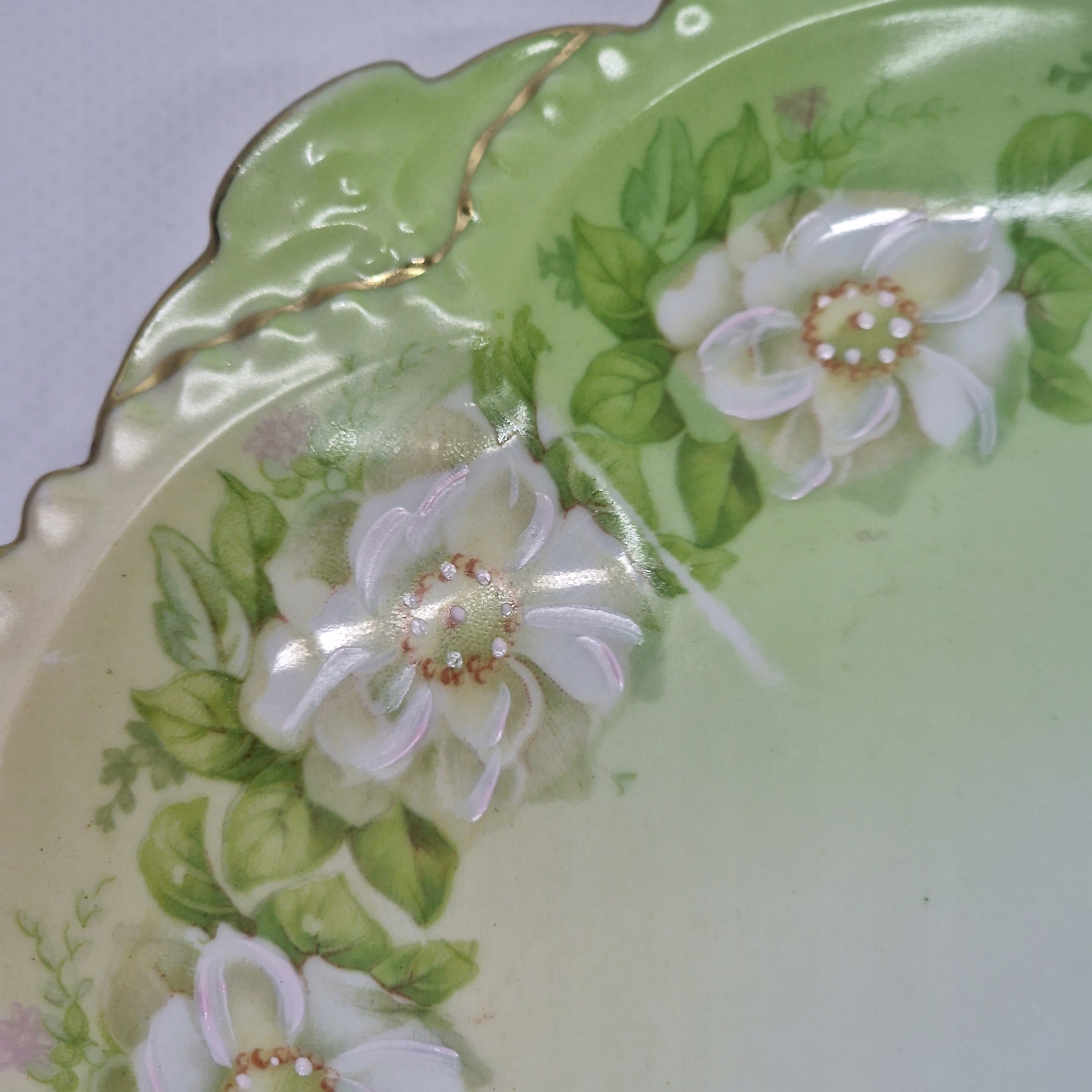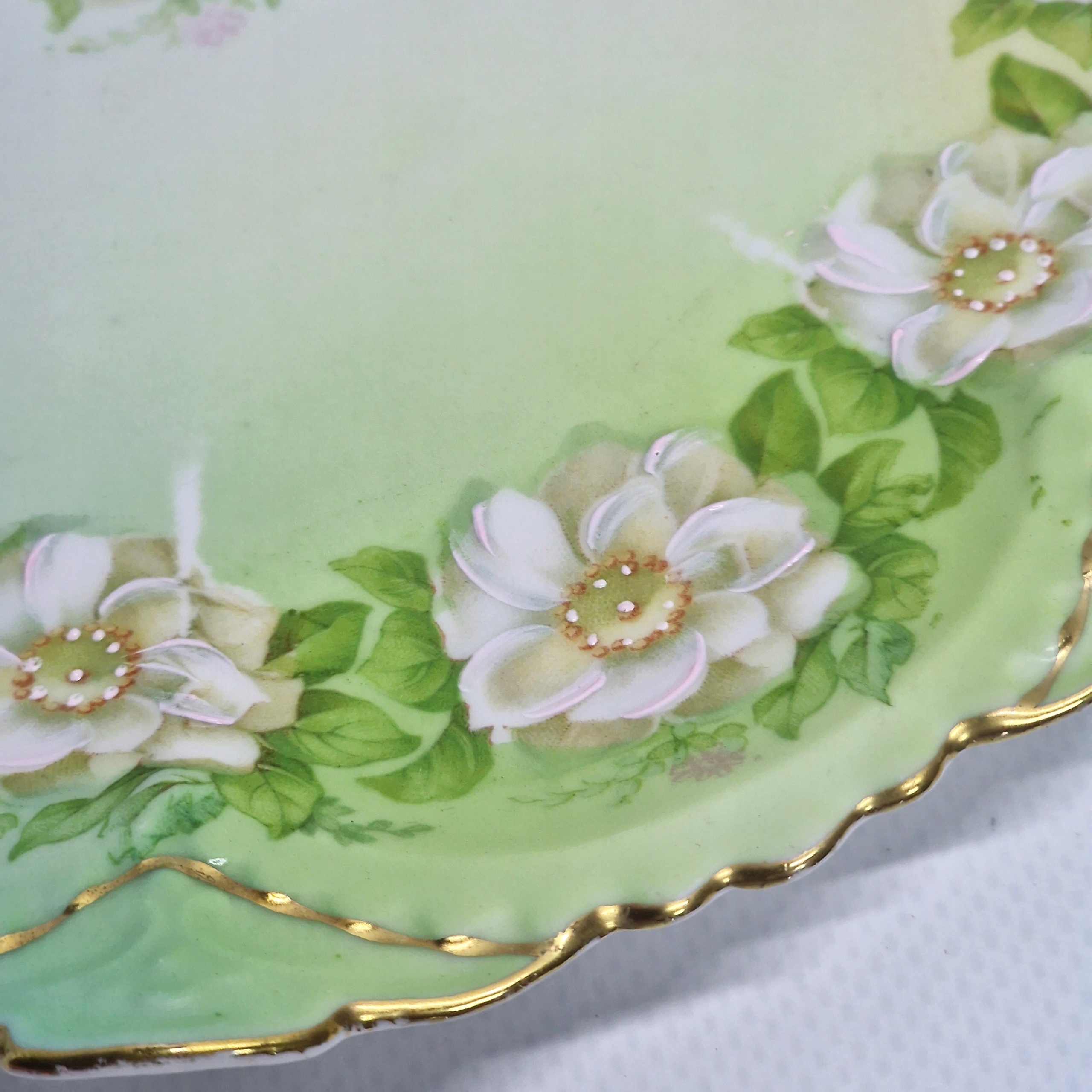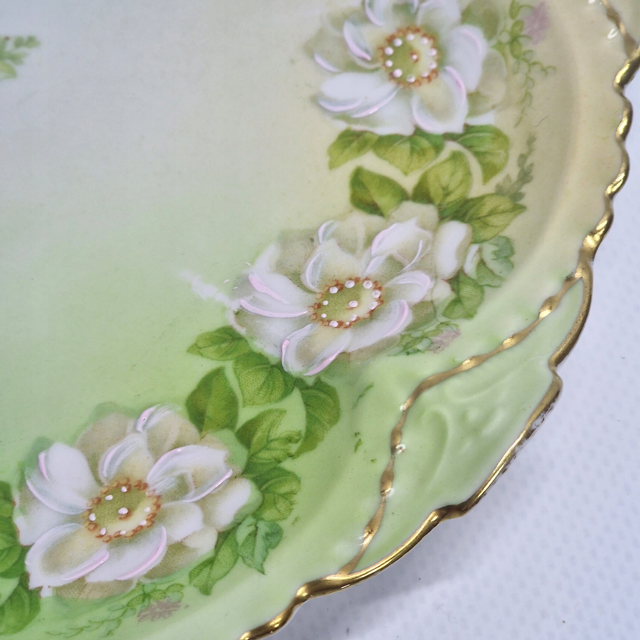 p>Тарелка изготовлена из нежного, тонкого фарфора белого и зеленого оттенков, который стоит иметь в своей коллекции.