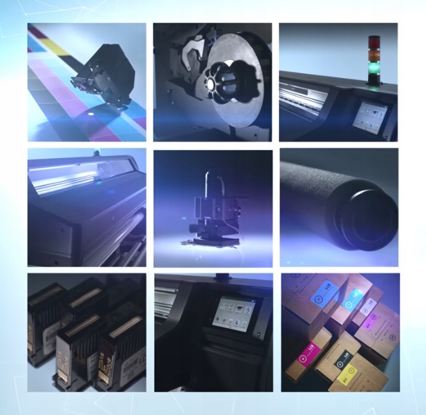 - Печатающие головки 7 (2 голубых/черных, 2 желтых/пурпурных, 1 светло-пурпурный/светло-голубой, 2 оптимизатора HP Latex)