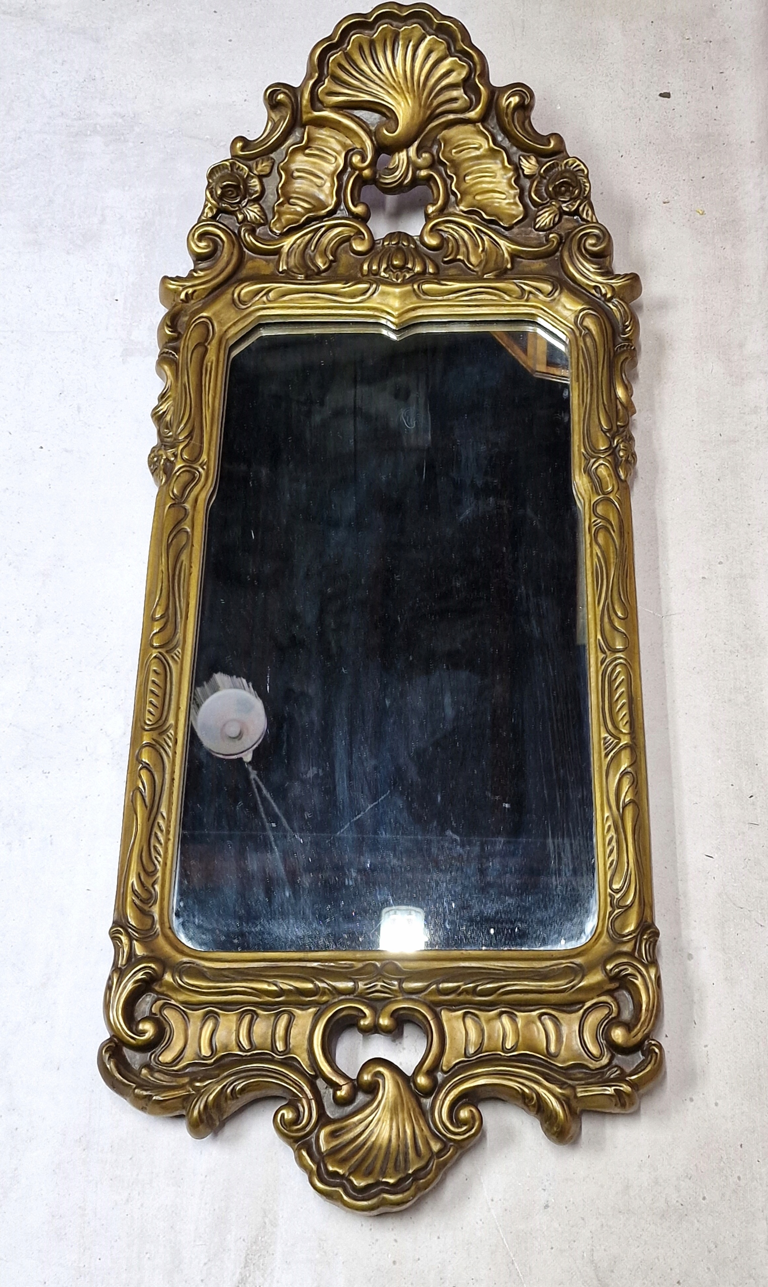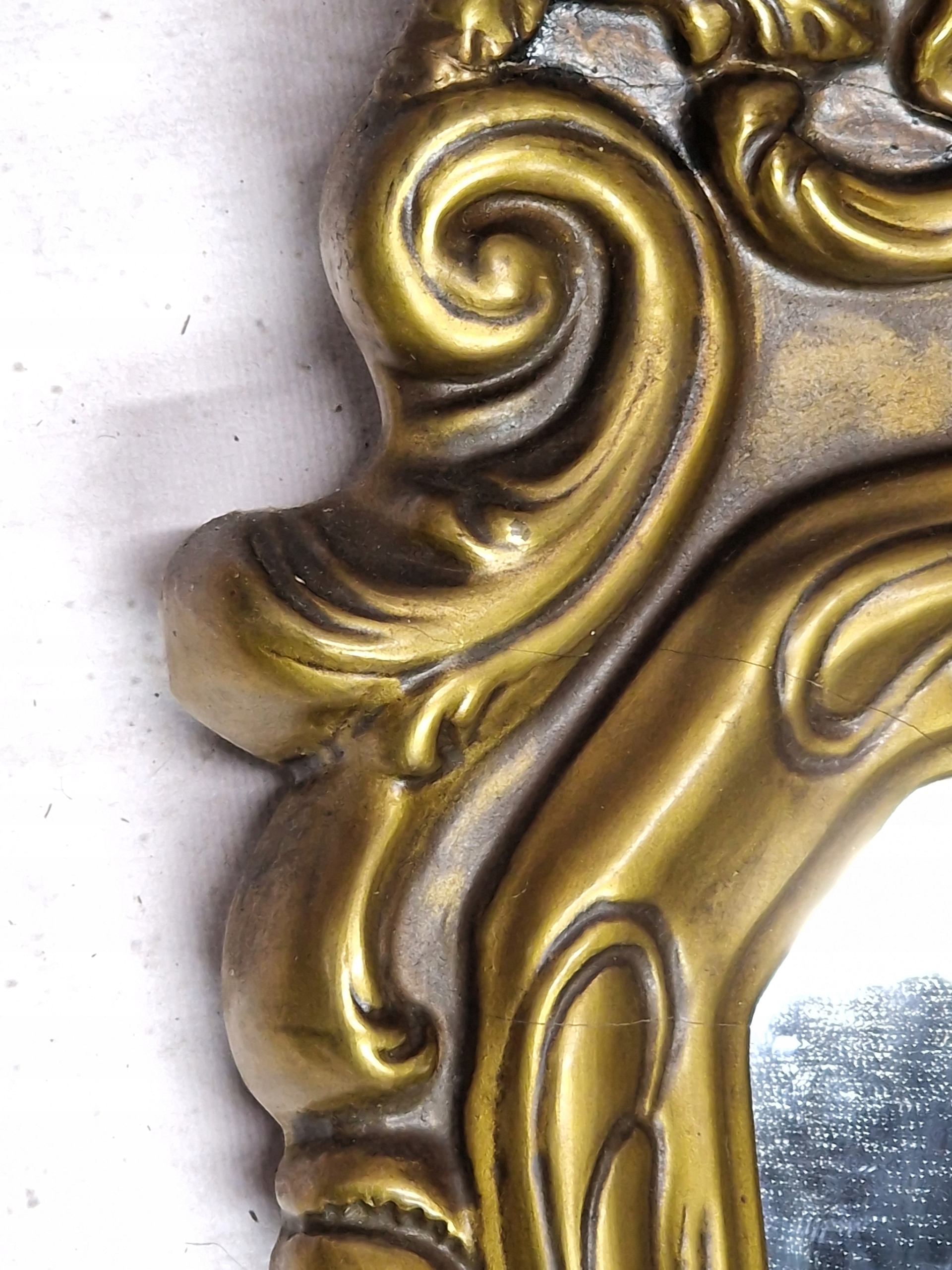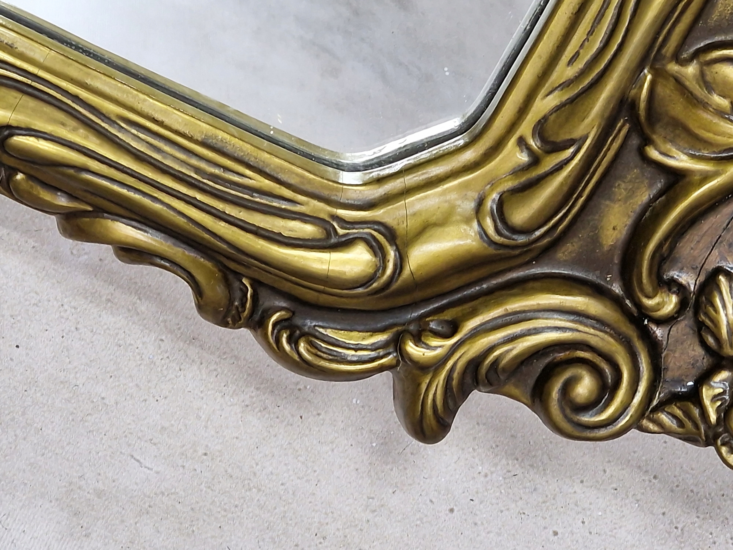 Старое зеркало в раме, интересной формы в стиле барокко.