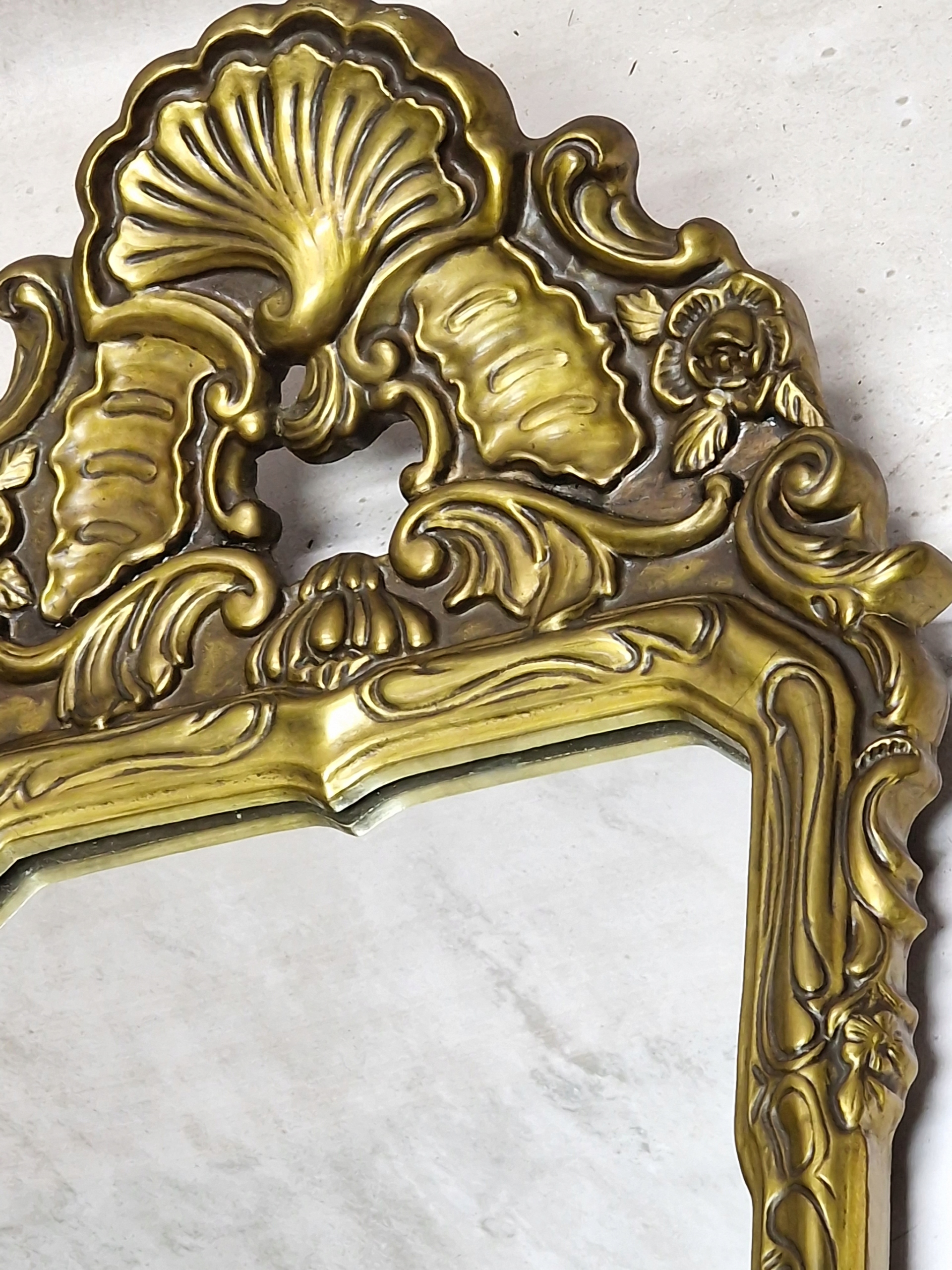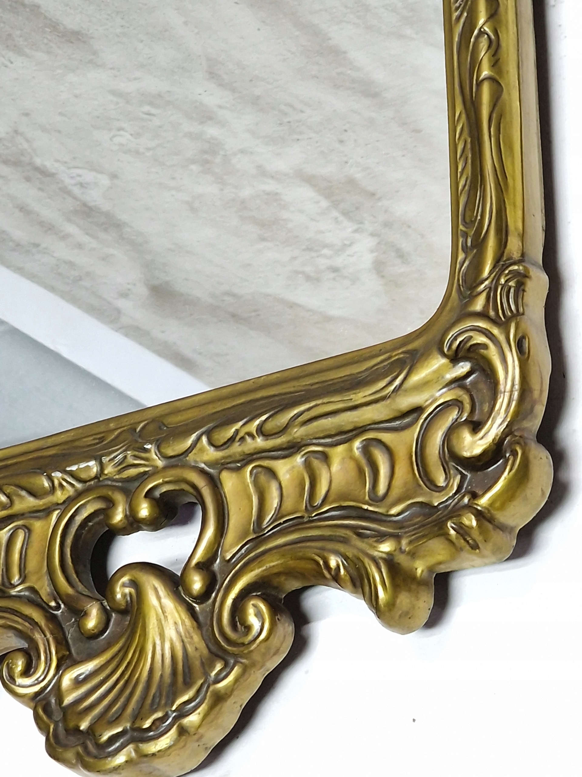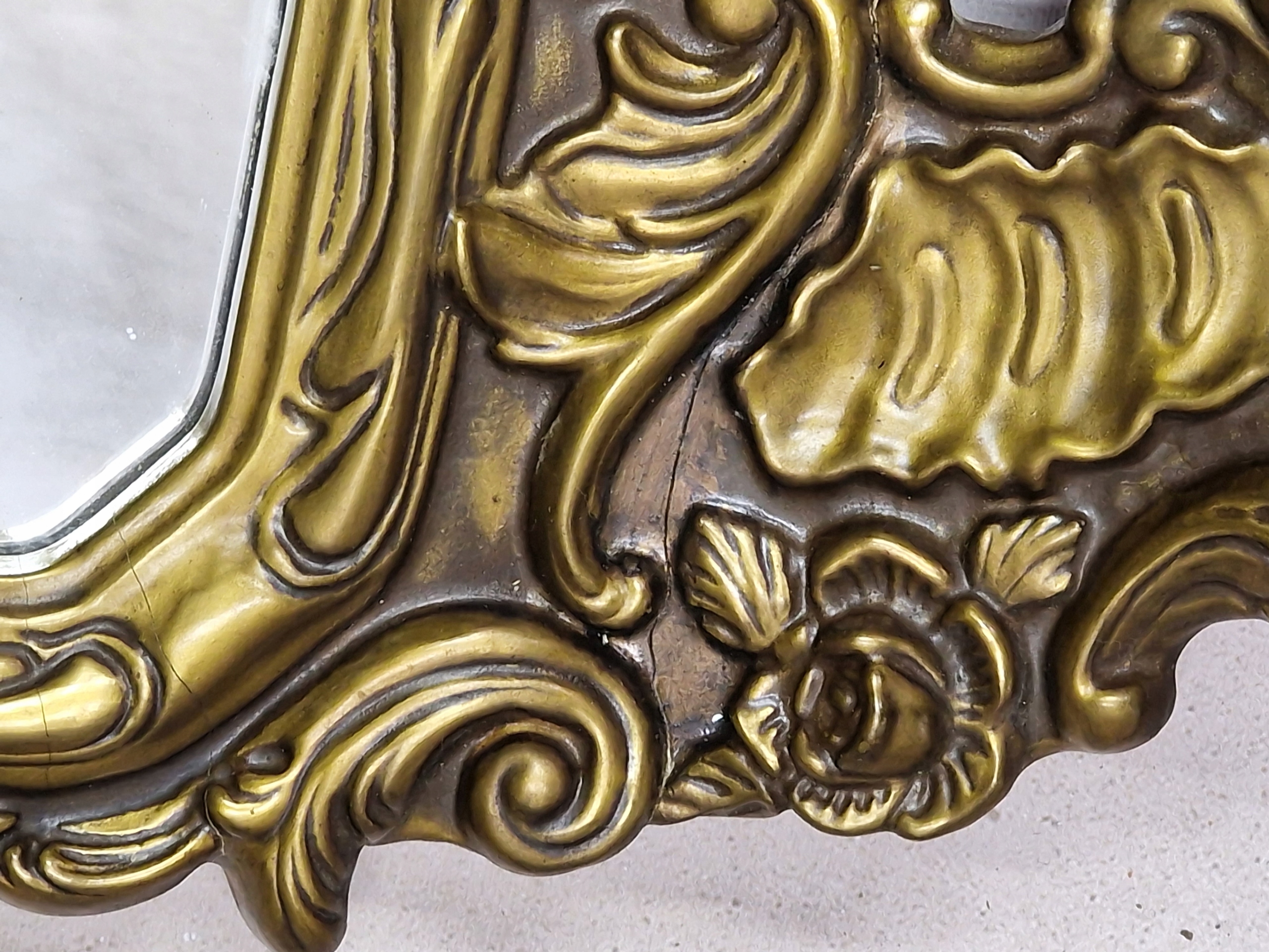 Старое зеркало в раме, интересной формы в стиле барокко.