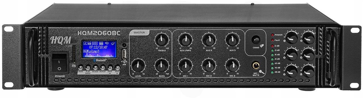 Усилитель HQM 2060-BC создан для бесперебойной работы 24 часа в сутки. Встроенный в устройство радиотюнер AM/FM, а также порты USB и слот для SD-карт с поддержкой MP3 расширяют возможности продукта. Кроме того, понятная и интуитивно понятная панель управления обеспечивает, среди прочего: возможность изменения режима работы, автоматический или ручной поиск радиостанций или даже выбор музыкальных файлов и многое другое. Элегантный пульт дистанционного управления также упрощает управление усилителем.