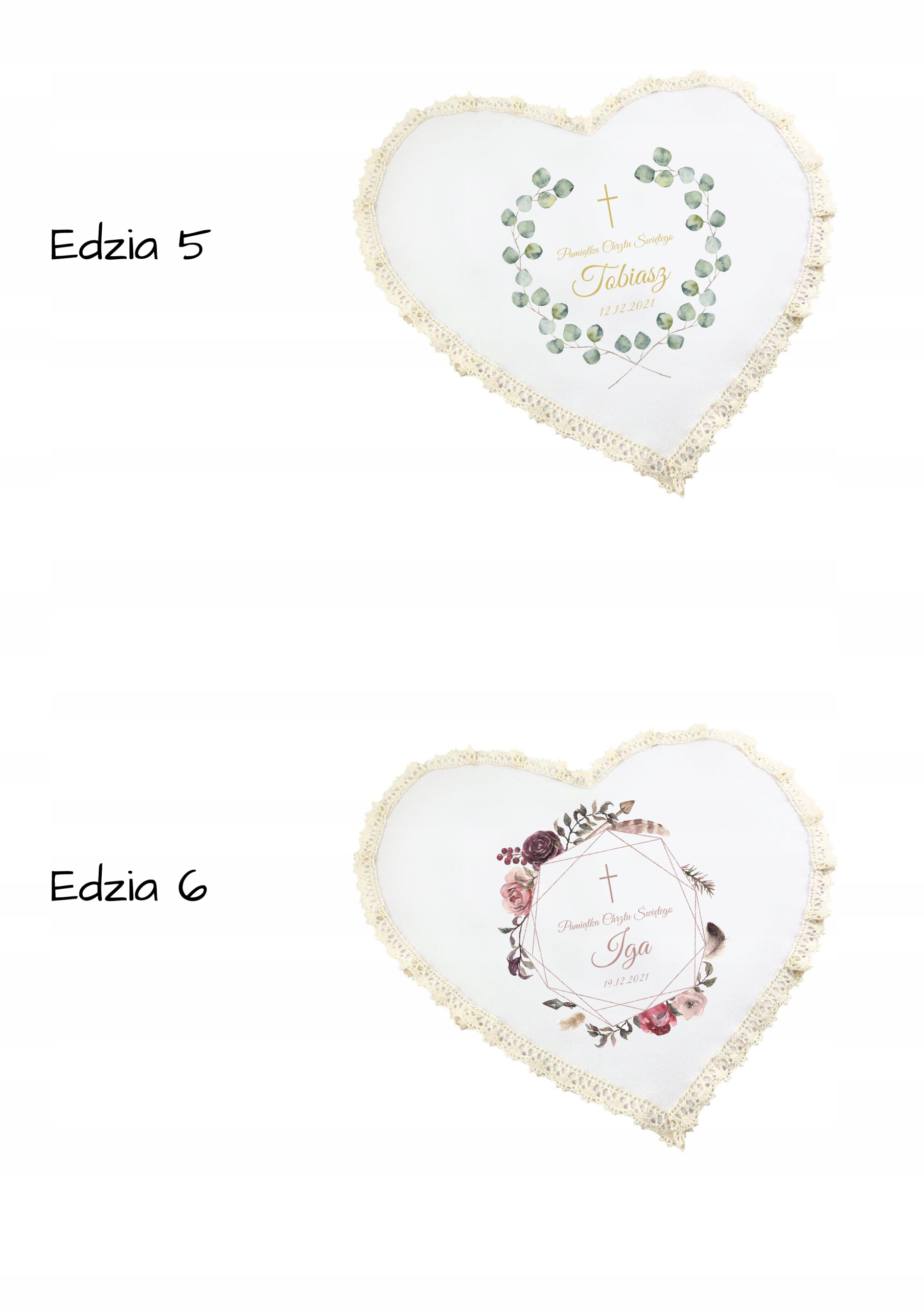 Мы изготавливаем их методом сублимации на белоснежном жоржете в форме сердечко, отделанное бежевым хлопковым кружевом.