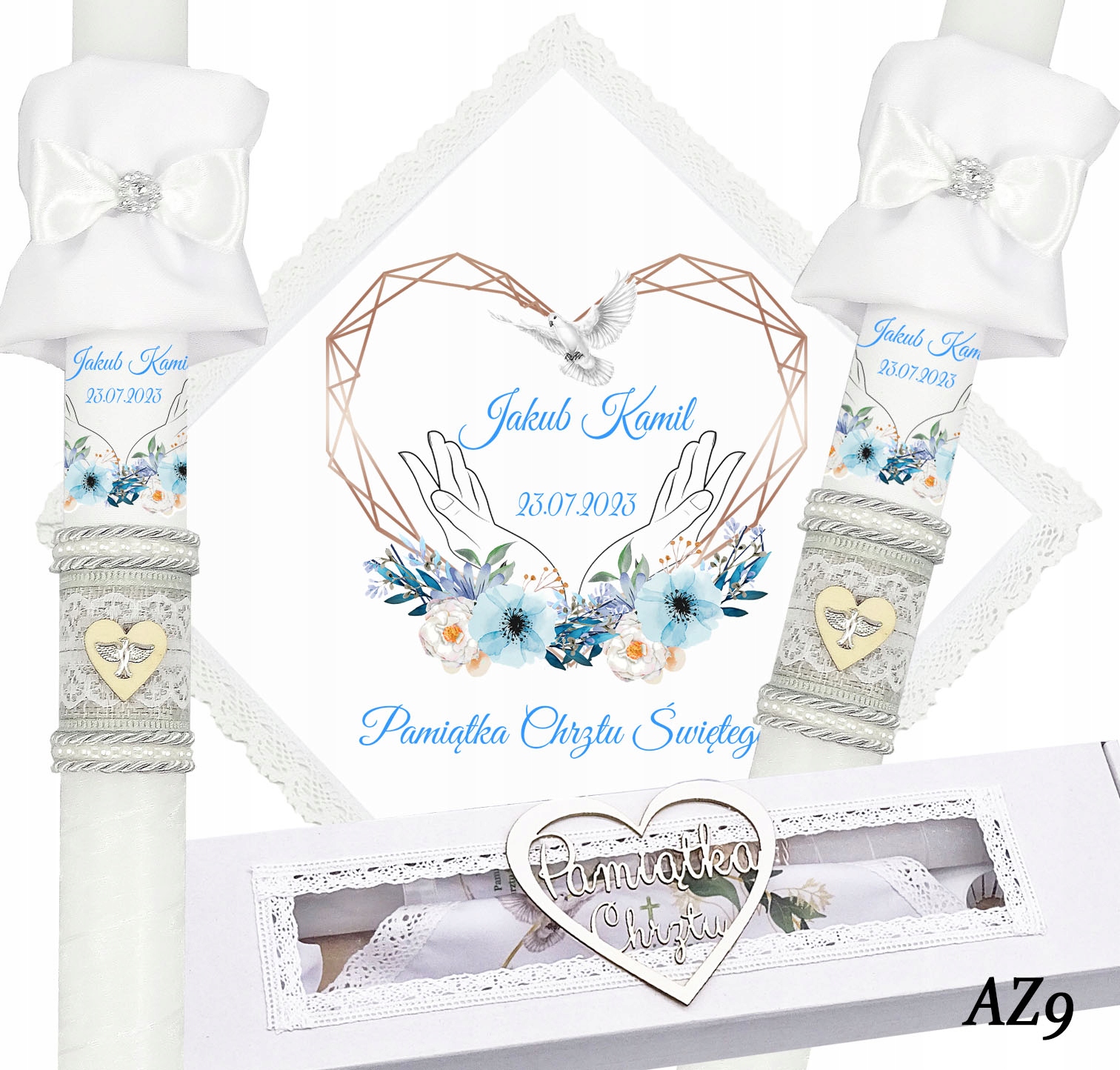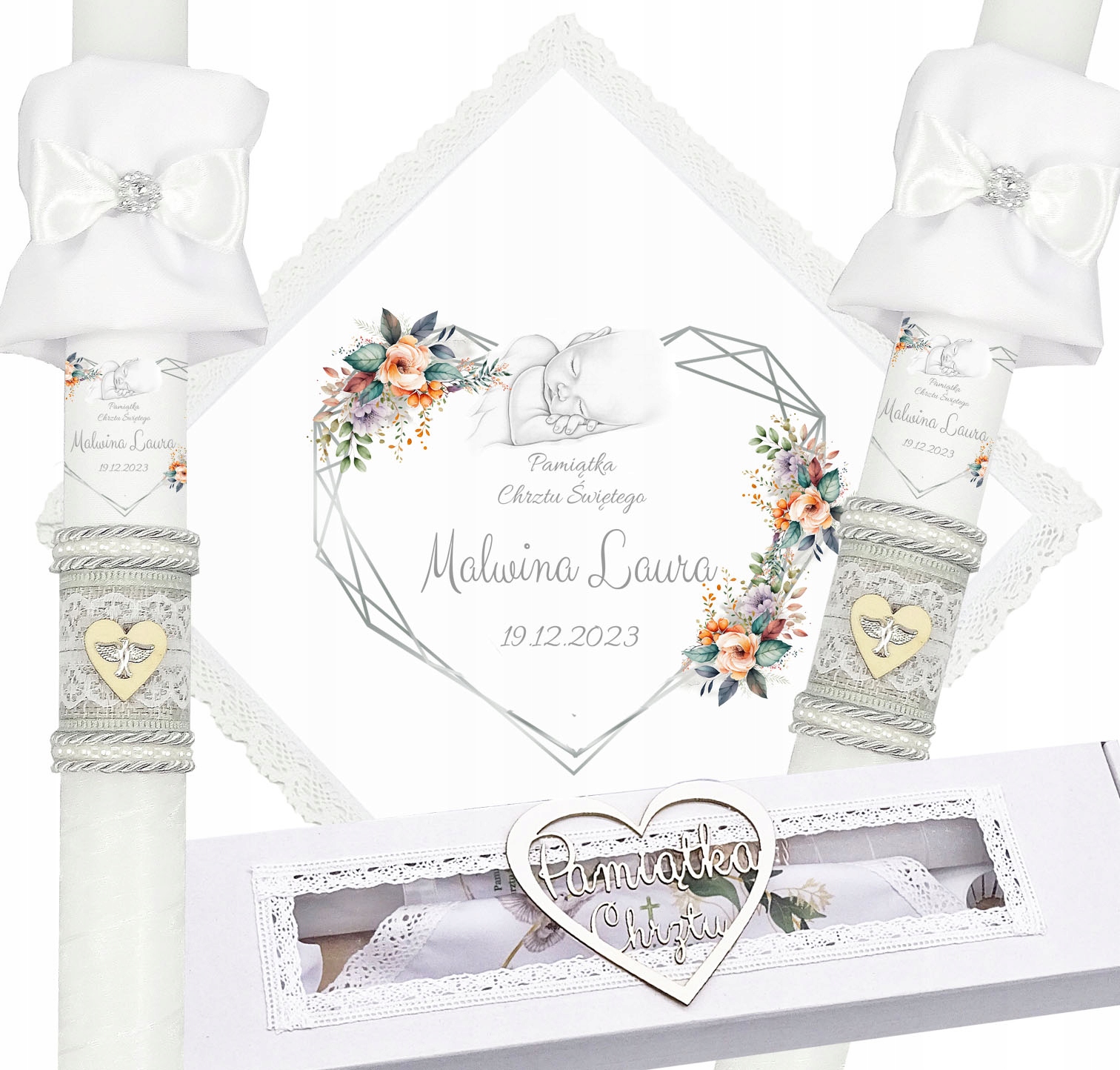 Представляем необыкновенный комплект из крестильной одежды и свечи, созданный с торжественным событие в жизни каждого ребенка. Халат выполнен из белоснежного материала и отделан хлопковым кружевом, что придает ему элегантность и нежность. Свеча декорирована вручную и имеет принт с именем ребенка, что делает ее неповторимым и неповторимым сувениром. Свеча имеет серебряную нить, на ее поверхности серая джутовая лента с кружевом и деревянное сердце с серебряной эмблемой Святого Духа на нем. Остальная часть свечи обмотана белой шифоновой лентой.