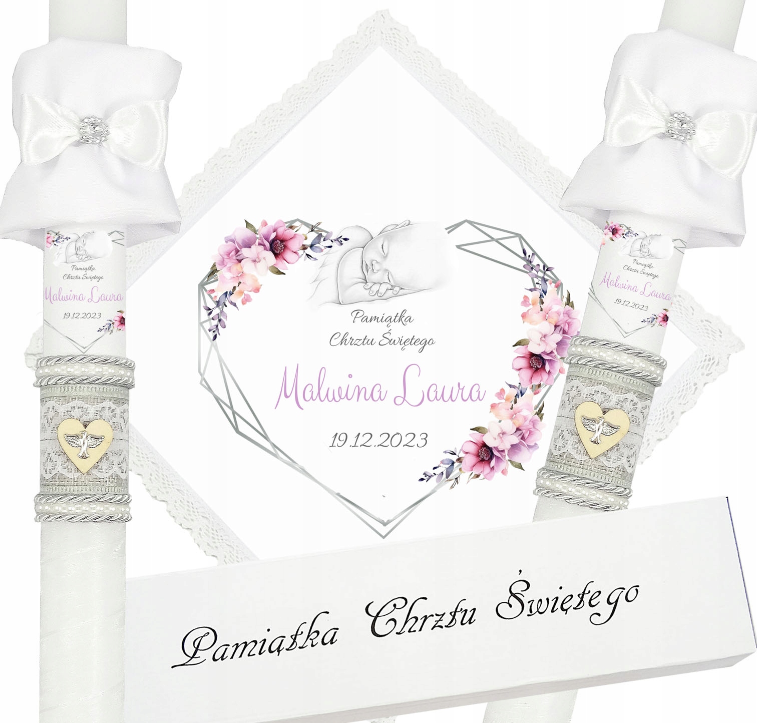 Представляем необыкновенный комплект из крестильной одежды и свечи, созданный с торжественным событие в жизни каждого ребенка. Халат выполнен из белоснежного материала и отделан хлопковым кружевом, что придает ему элегантность и нежность. Свеча декорирована вручную и имеет принт с именем ребенка, что делает ее неповторимым и неповторимым сувениром. Свеча имеет серебряную нить, на ее поверхности серая джутовая лента с кружевом и деревянное сердце с серебряной эмблемой Святого Духа на нем. Оставшуюся часть свечи обматываем белой шифоновой лентой. Все это упаковано в белую картонную коробку с надписью «Сувенир Святого Крещения», а также в комплект входит тканевый бонус-мешочек. Этот уникальный комплект из халата и свечи непременно подчеркнет церемонию крещения и усилит эмоции и воспоминания, связанные с этим особым событием.