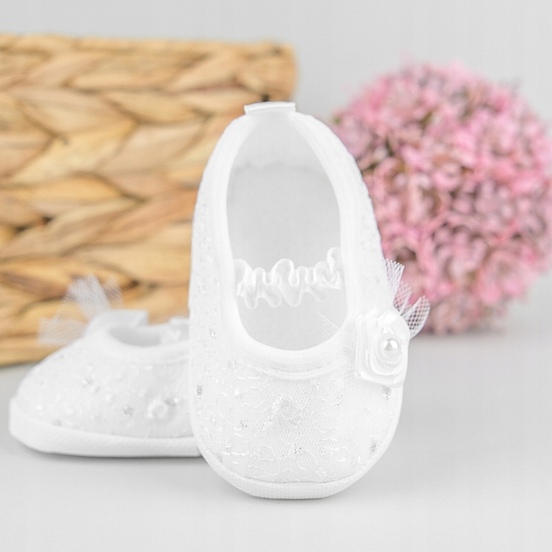 Белые, кружевные крестильные туфли для девочек