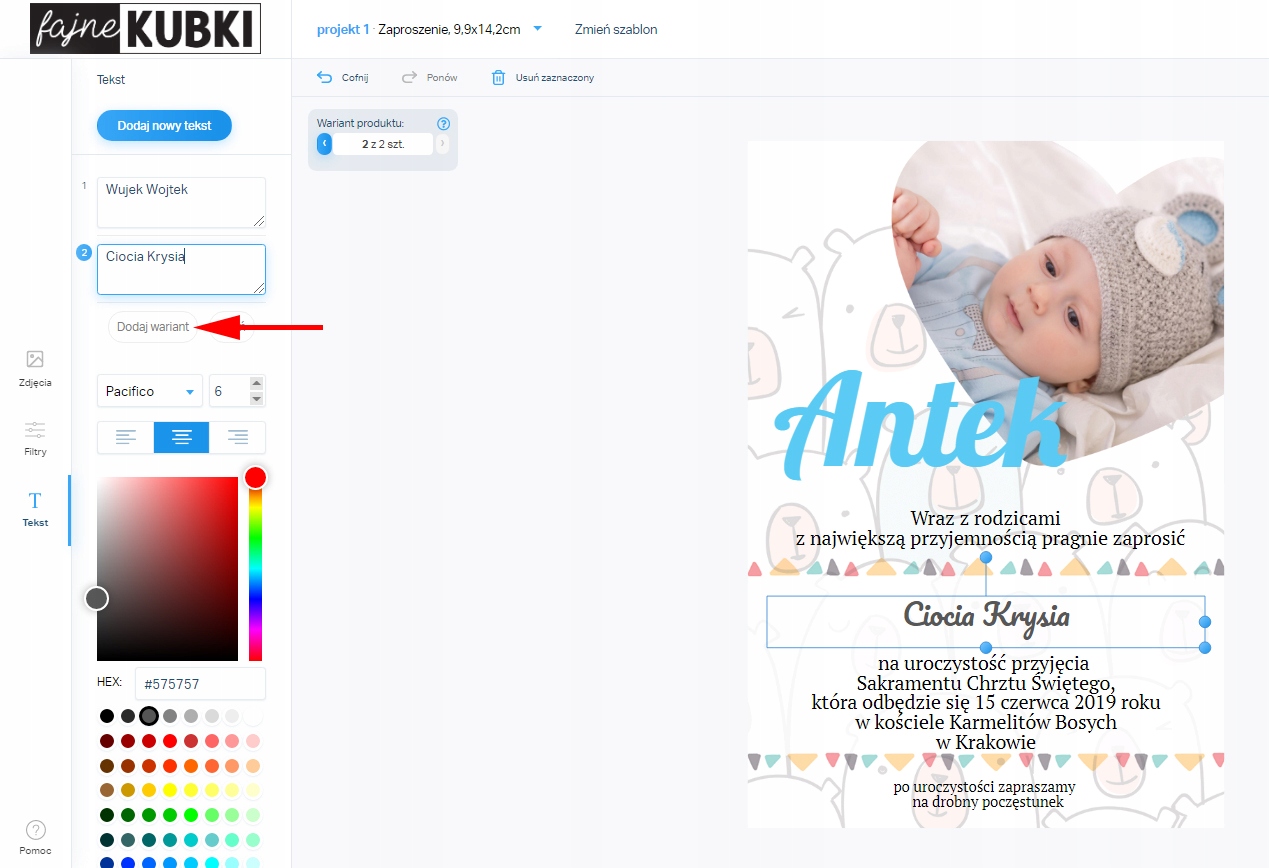 Отметьте поле с текстом, а затем заполните поле, указав, кого вы хотите пригласить. Чтобы добавить еще одно приглашение, нажмите кнопку «Добавить вариант» ниже и заполните следующее приглашение. Вы можете свободно переключаться между приглашениями в любое время. вы можете отредактировать текст еще раз или удалить его.